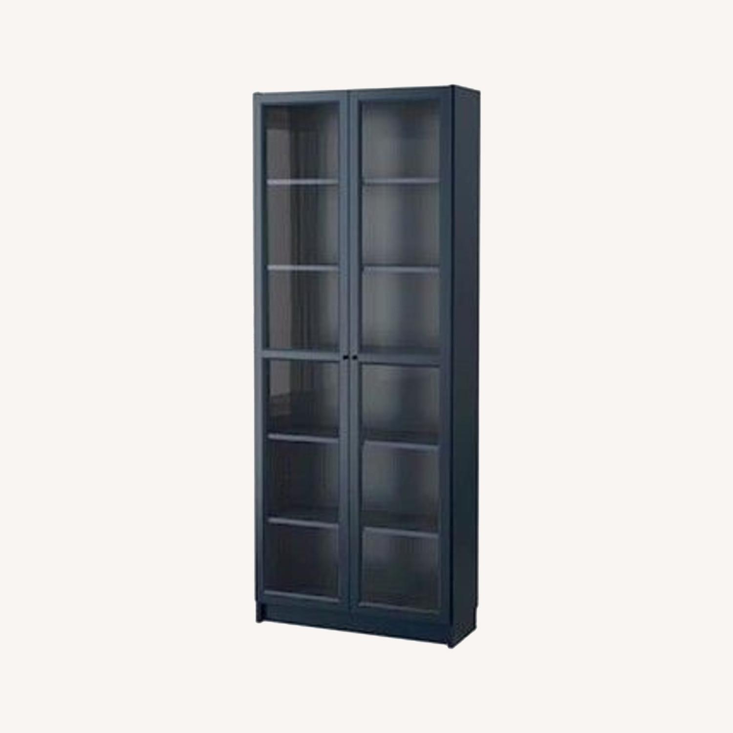 IKEA Billy Navy Blue Bookcase w/ Glass Doors