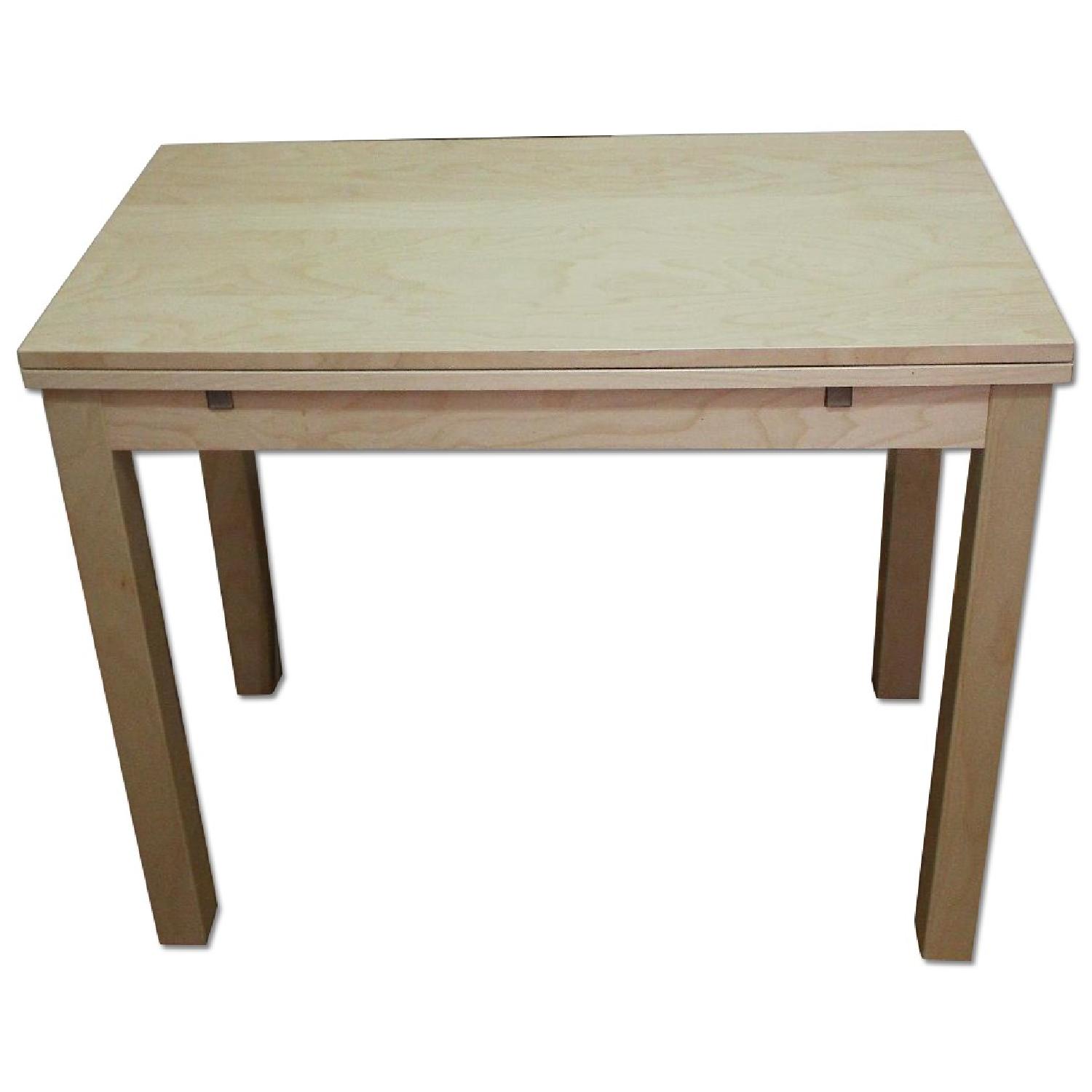 Seller's Notes:This birch extendable dinning table, part of the IKEA Bjursta collection, is great for smaller apartments or for a breakfast nook. The table can sit two, or pull out the leaves for a 35.375" x 35.375" table space that can accommodate two table settings and a few dishes for dinner. The light birch veneer has a beautiful wood grain that brightens up the space. The table is in good condition with no stains, scratches, wobbly legs, etc. The table top surface is durable and very easy to clean. This table has been perfect for my studio, but I'm listing it because I'm moving.