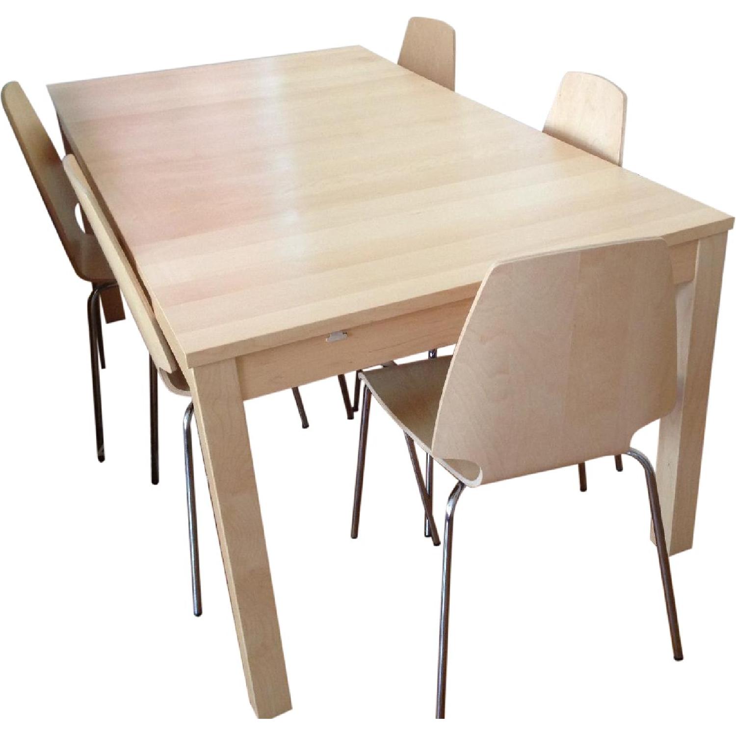 Seller's Notes:Much loved dining set, must sell due to relocation. Retail links: IKEA BJURSTA table (retail price $199.00) http://www.ikea.com/us/en/catalog/products/00116265/ IKEA VILMAR chair (retail price $39.00 per chair (Total 5 chairs)) http://www.ikea.com/us/en/catalog/products/S19889748/