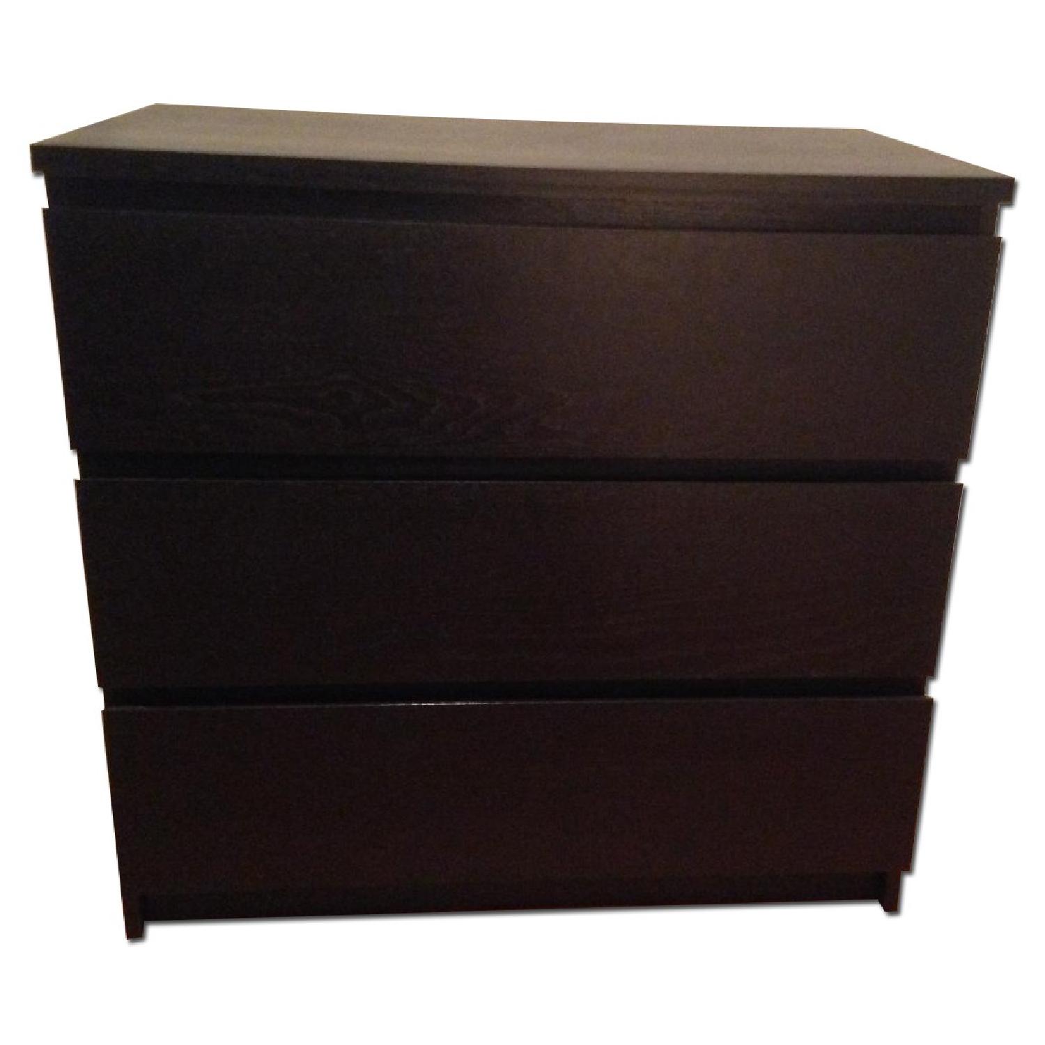 Ikea Black Wood Night Stand + Matching Chest Of Drawers