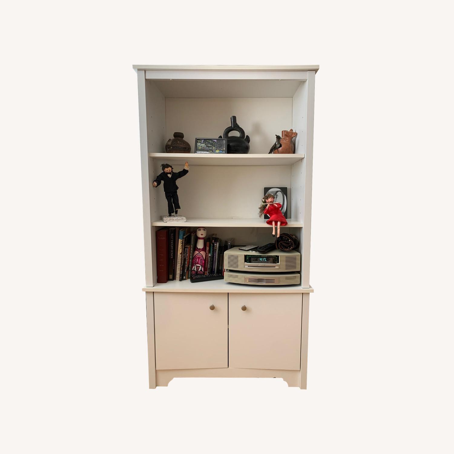 Seller's Notes:Bought 3 years ago used, appears to be an Ikea product. The backing is slightly warped but could be nailed on more securely. The cabinet doors are sturdy and the adjustable shelves hold lots of stuff.