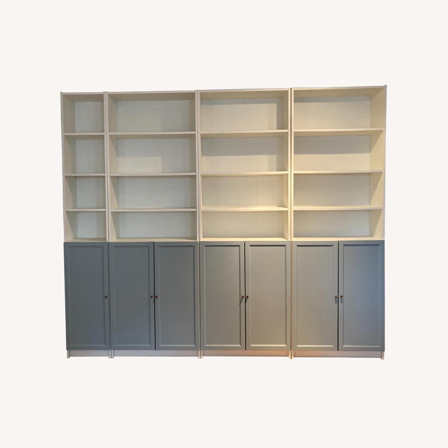 Seller's Notes:According to the original owner; Typical IKEA bookshelves but with a custom paint job! Original color when purchased in late 2015 was dark brown, after which I had the shelves painted in white and cabinet doors in a gray-bluish color. As you can see, the cabinet interior was not painted. These bookshelves are ideal for displaying books, picture frames, memorabilia and collectibles. Shallow and adjustable shelves allow for customization, depending on the height of your display items. Panel doors on lower half provide dust-free storage. BILLY has a simple and timeless design. Perfect for your home or office.