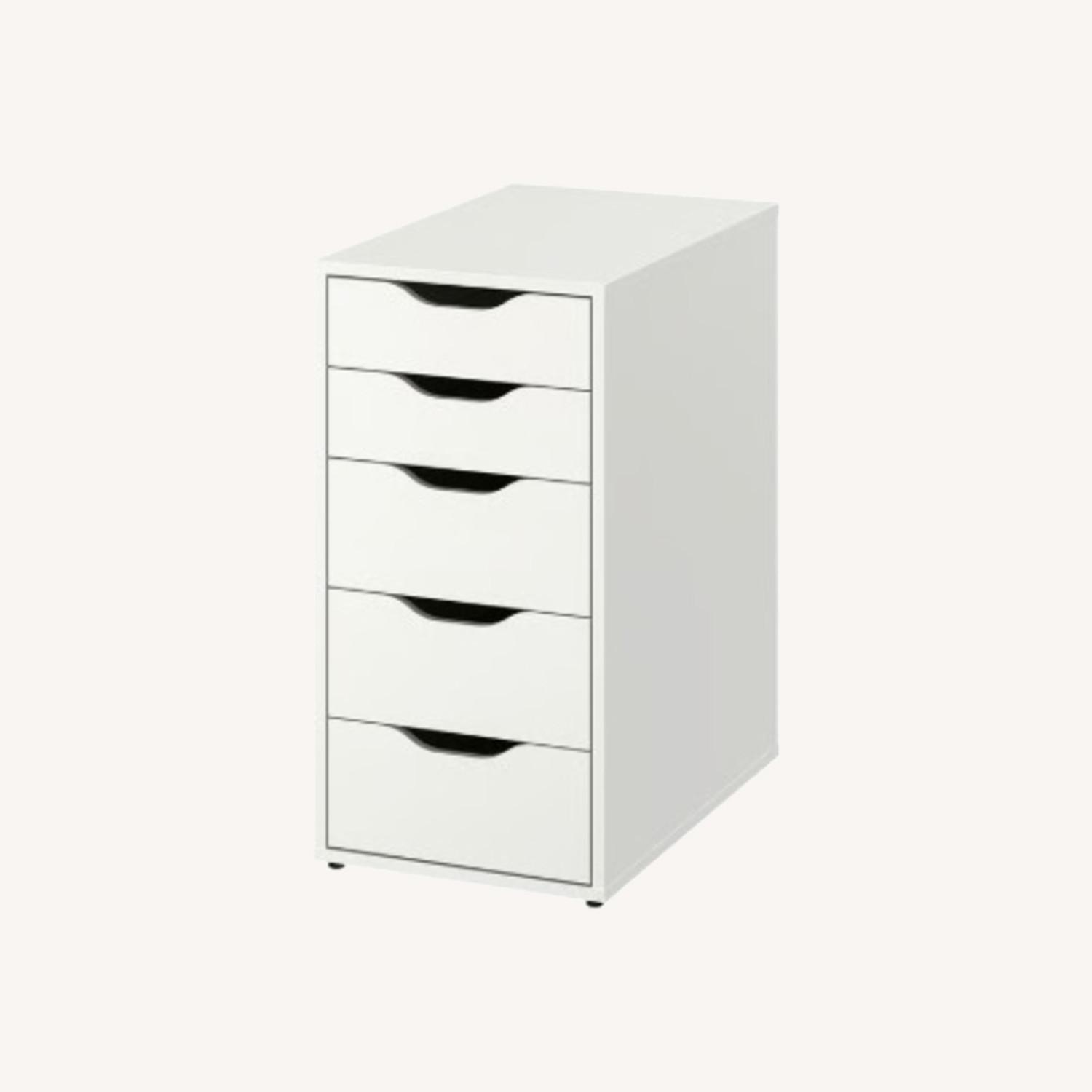 • Two IKEA ALEX drawer units (white) - each approx 14 1/8" W x 22 7/8" D x 27 1/2" H. https://www.ikea.com/us/en/p/alex-drawer-unit-white-00473546/