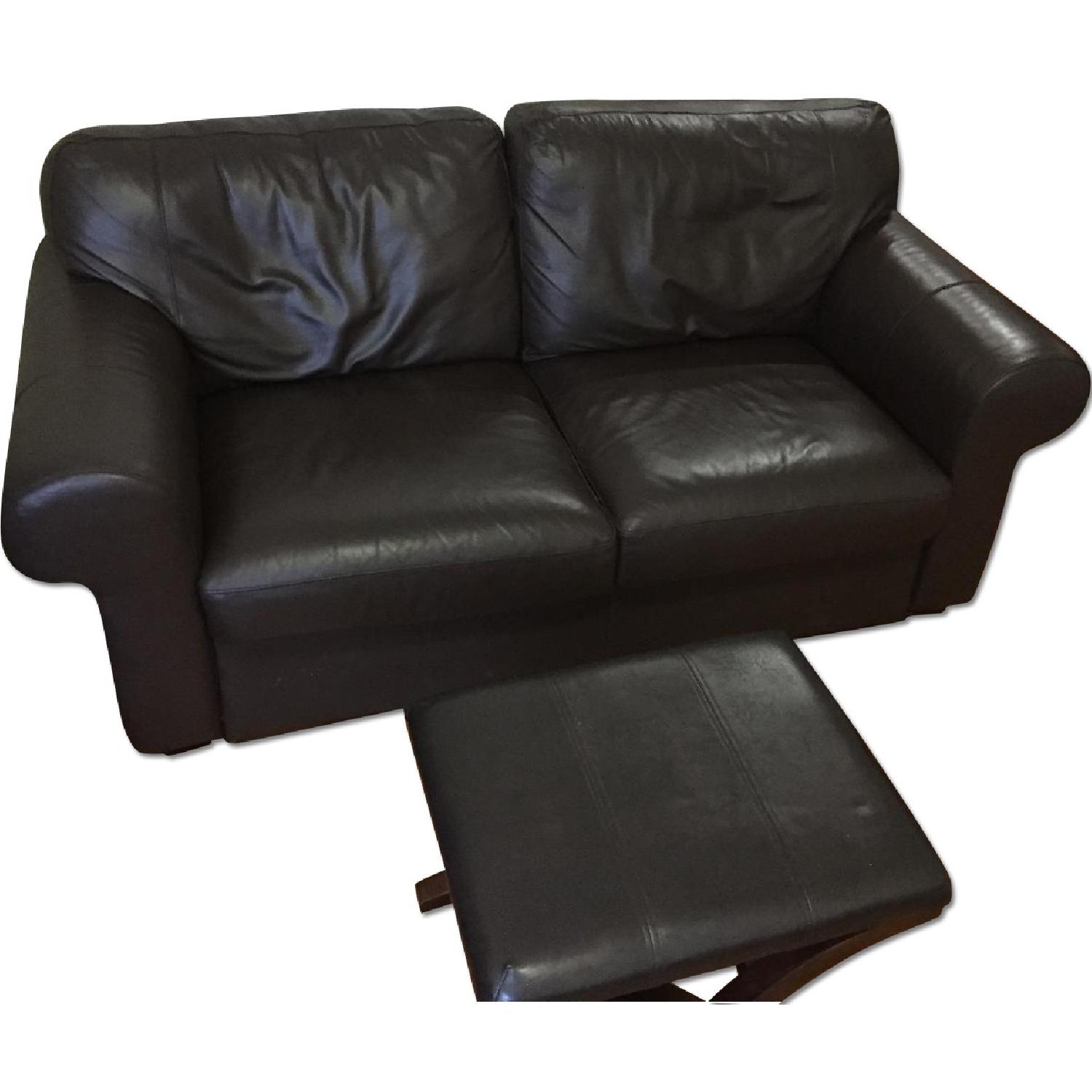 Ikea Dark Brown Faux Leather Couch & Ottoman