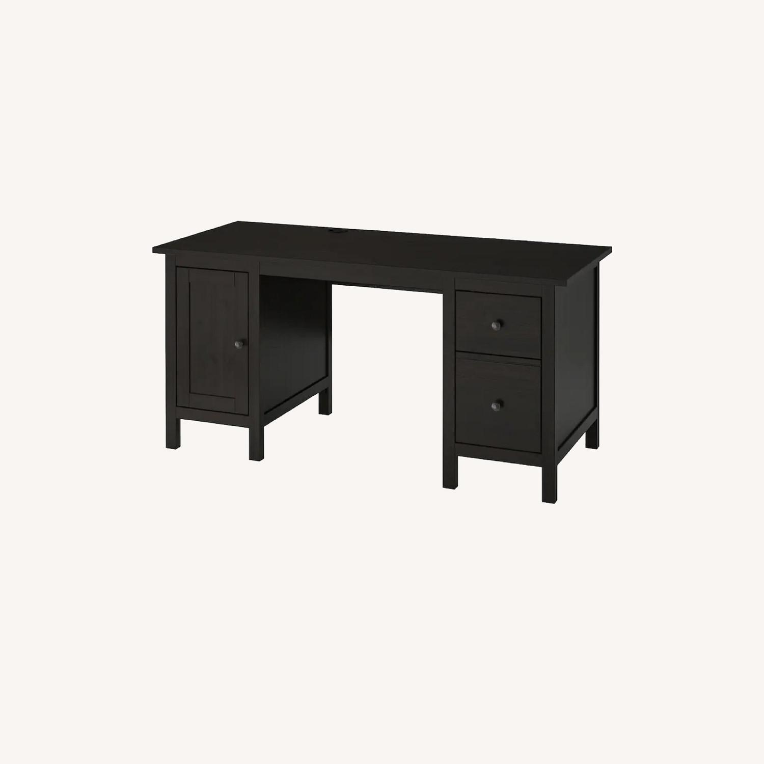 Seller's Notes:Excellent Hemnes desk that's only two years old, featuring a cable storage system, multiple desk drawers, file management, and a grommet in the middle of the desk. Cat not included.