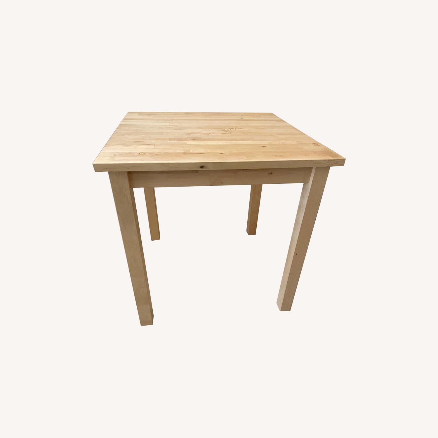 Seller's Notes:This table was purchased five years ago. IKEA isn't making this model anymore, but for comparison it's closest to the LERHAMN table. It's a lovely natural, light wood style, and fits well into a kitchen or other small dining space. No defects. Comes from a no-pet, non-smoking home. The two dining chairs pictured are also IKEA (natural color, most similar to the current IVAR or NORDVIKEN chairs). No wobble, solid. They come from a no-pet, non-smoking home. I have a separate listing for them, if you'd like them, too. Table and chairs fit very well in a small space.