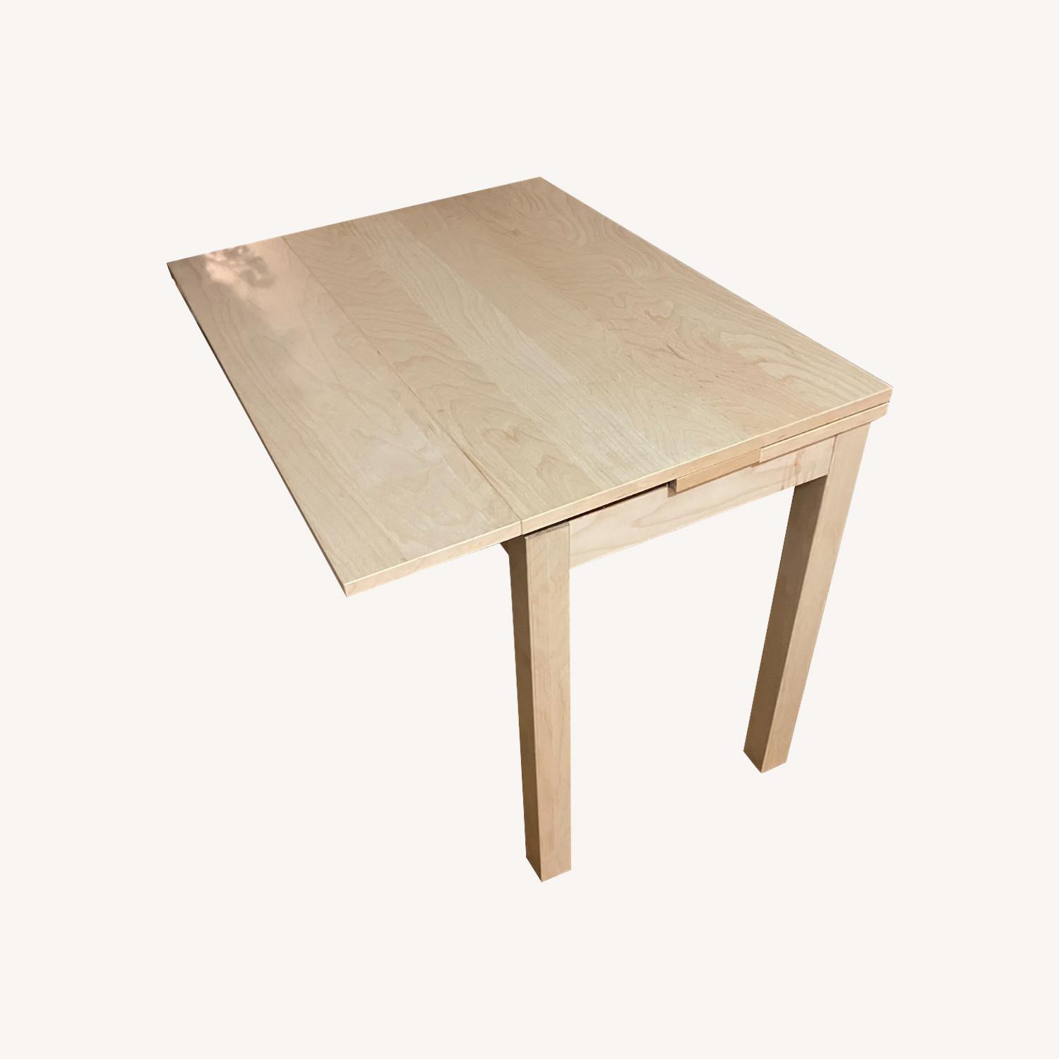 Seller's Notes:IKEA Dining table with extendable ends. Perfect for an apartment with 2 people or a studio. Good condition with few blemishes and a nice place to sit and eat.