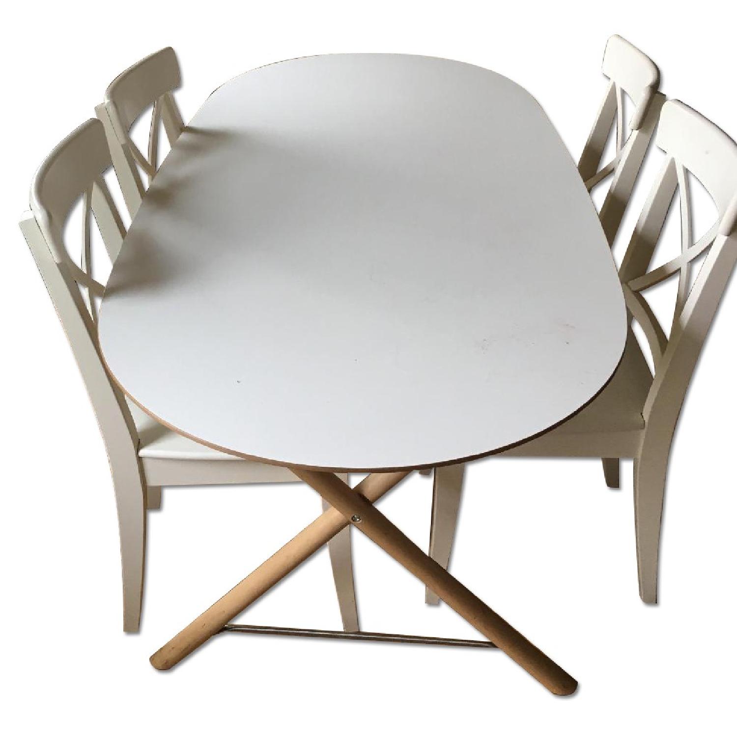 Seller's Notes:Moving back home after being in New York for a year. The stain is barely noticeable, it's a very slight purple hue, and you can see in the photos that it isn't visible. This dining table and chairs have served me well, and has rarely been used so looks as good as new. The melamine table top is moisture resistant, stain resistant and easy to keep clean. Solid wood is a durable natural material.