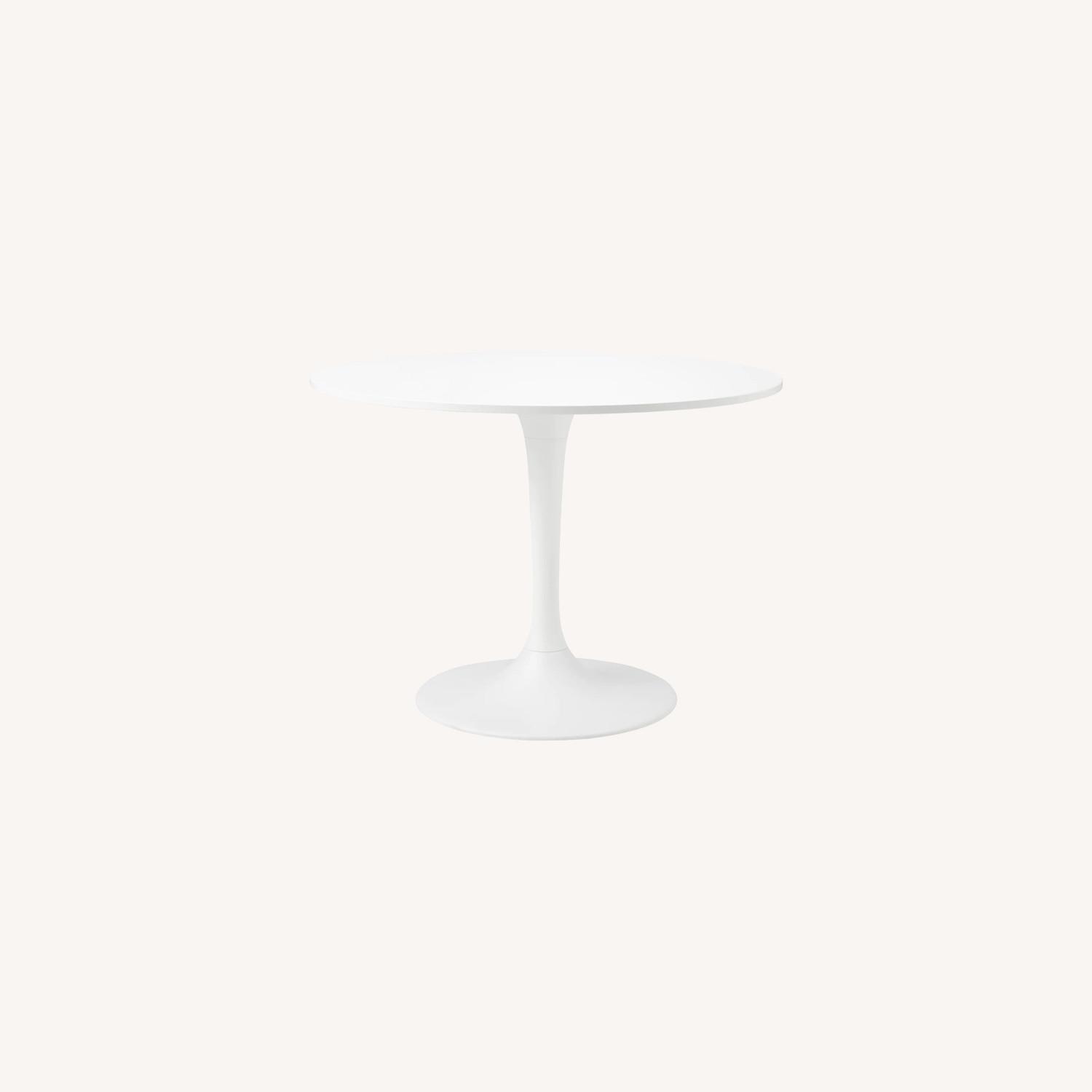 Seller's Notes:White Docksta tulip dining table from Ikea. Small footprint is great for apartments, but still comfortably fits four chairs. Good condition and sturdy. There are two minor scratches (see last photo) but not noticeable unless you're looking for them.