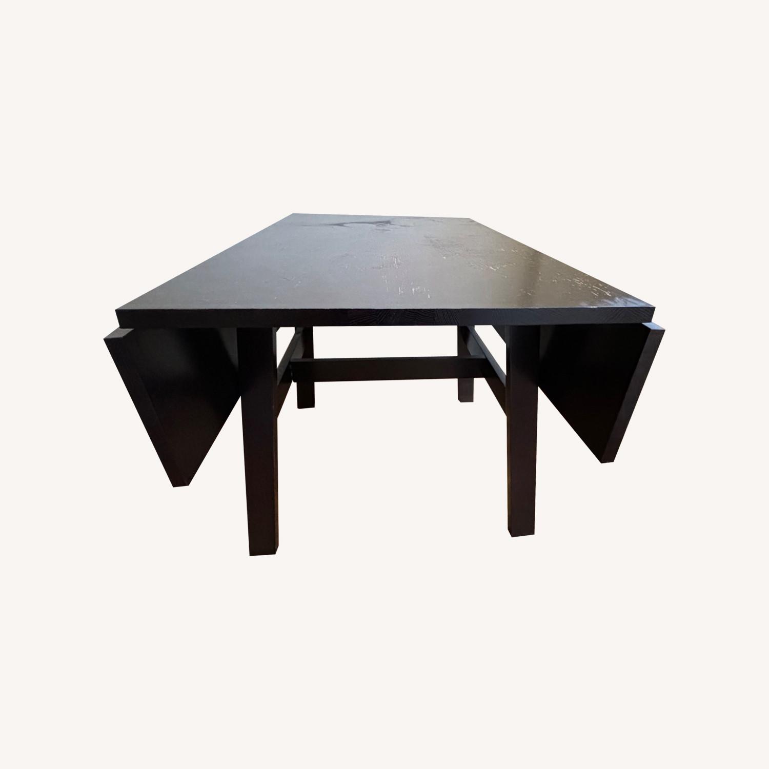 Seller's Notes:Well loved dining table opens to 4’ square or narrows to 30” wide when not in use. The top is scratched, and could use some love.
