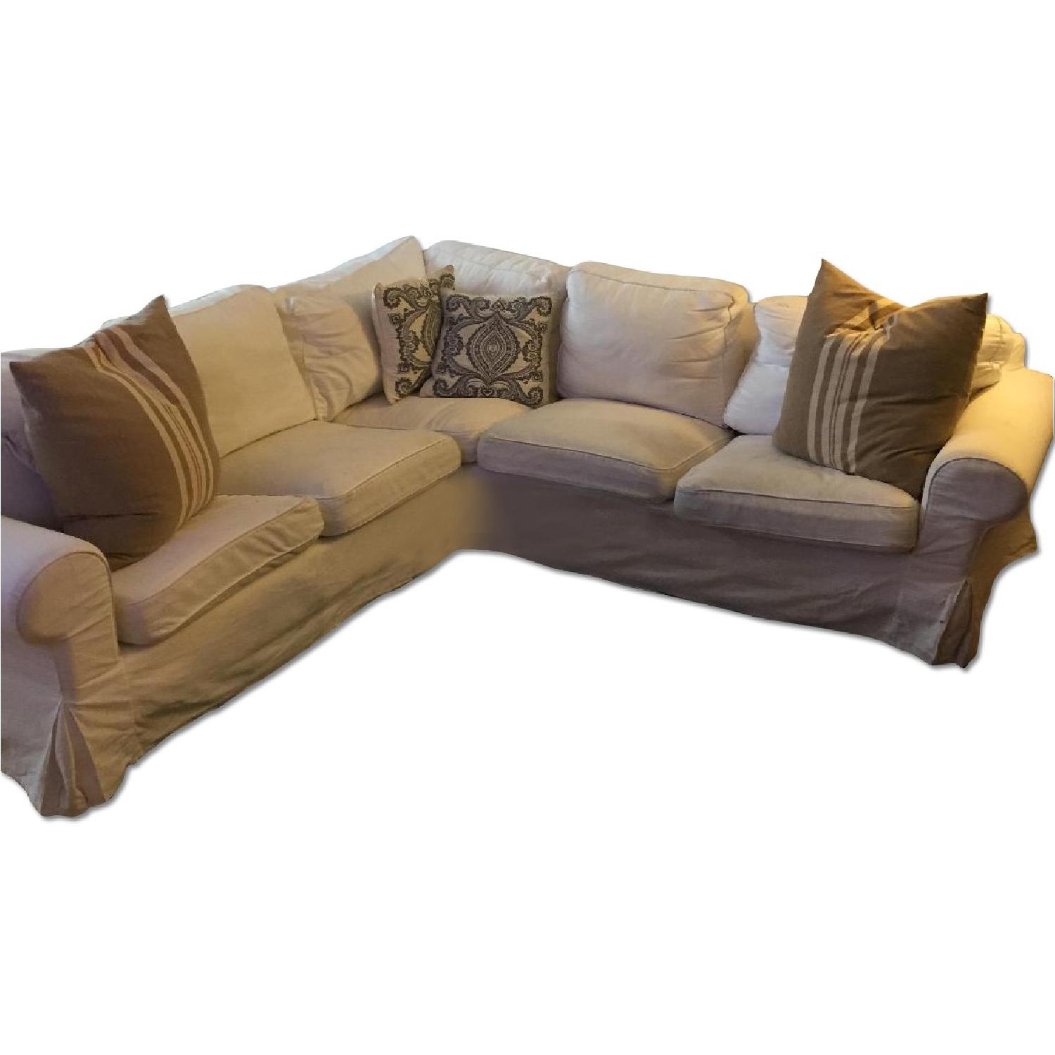 Seller's Notes:IKEA Ektorp L-Shaped Corner Sofa for sale. Fits perfectly in 1 bedroom flex converted living room. Purchased sofa for $1,000 less than 2 years ago. In excellent condition. Cushions covers are white but can purchase different color from IKEA.com. Cushions 100% washable. http://www.ikea.com/us/en/catalog/products/S09129150/