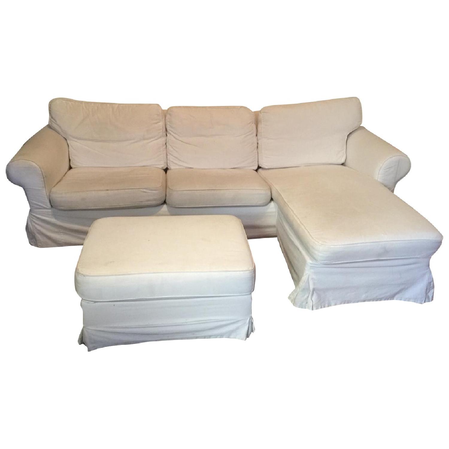 Ikea Ektorp White Loveseat w/ Chaise & Ottoman