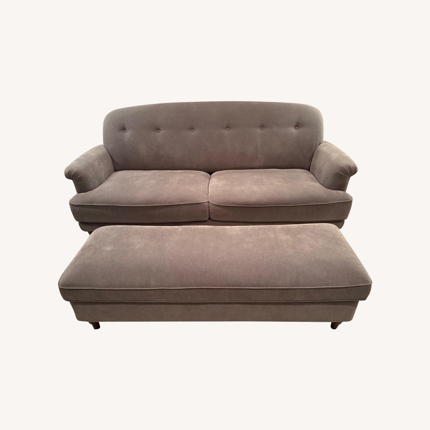 Seller's Notes:1 year old chenille 3 seater couch + storage ottoman. Super soft material that shows movement, but no blemishes. Gently used.