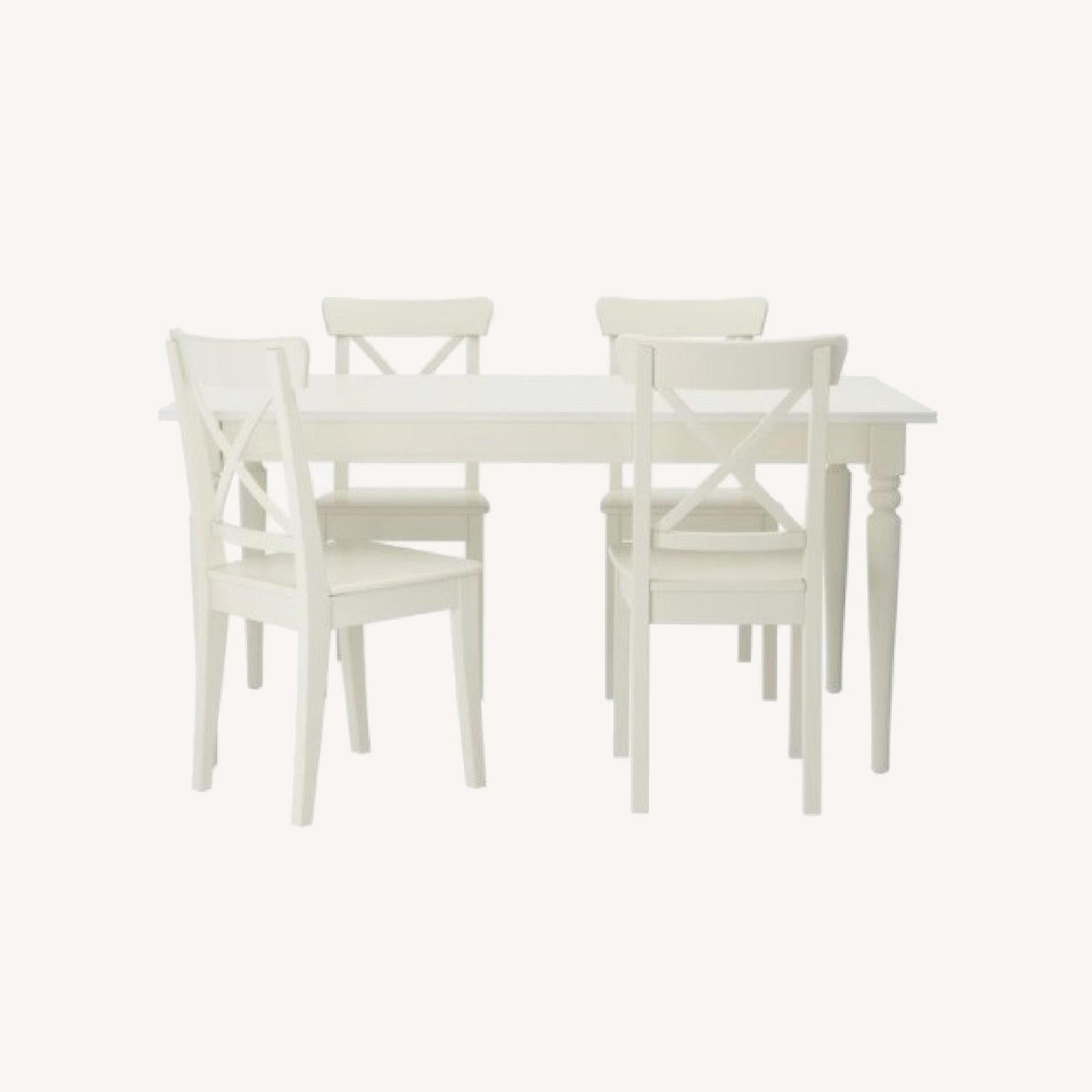 Seller's Notes:This expandable table has hosted so many dinner parties, but it's time to part with it because we're moving. 4 chairs are included to round out the set. At 61 inches long, the table comfortably seats 6. When extended, it becomes 84 inches long and comfortably seats 8. The extension is cleverly hidden under the table. Putting it all together is a snap. During the pandemic, we have used it a shared work desk for two, or a large work desk for one. The set is in great condition because it wasn't our main dining table (we have an eat-in kitchen set-up) and we don't have any pets or children. AD21