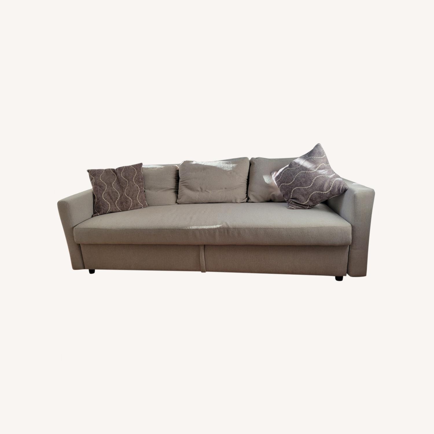 Seller's Notes:Futon/ Sleeper Sofa we've owned for over 2 years but only used a handful of times. It's beige (you can see on Ikea website). The fabric is pilling and their's a slight darkening of the fabric. It has a nice storage space which is handy for extra linens. My husband & I are moving abroad and can't take it with us.