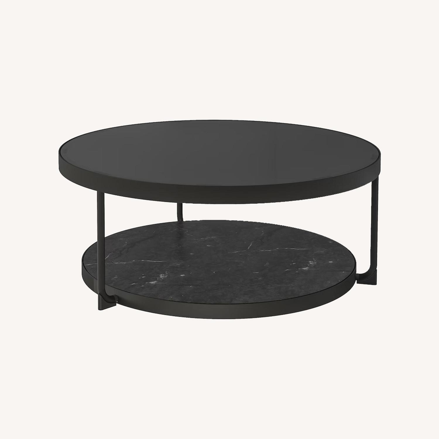 Seller's Notes:We purchased this coffee table and its coordinated nesting coffee table to stage an apartment for sale. Thus is has never been truly used. It was purchased only six months ago and is brand new condition. We paid full retail, plus tax, plus shipping, and had to painstakingly put them together and dispose of all the packing materials. Our offer is well below retail, and as a bonus, it will come fully assembled. From Ikea: Well-thought-out design with various materials and finishes with a table top in smoked glass, powder-coated tubular steel legs and a base with marble effect give the table a personal character. The round FRÖTORP coffee/side table has a straightforward and solid look with materials that are both hardwearing and timeless. Combine tables in different sizes to create a dynamic room and enjoy a larger table space.