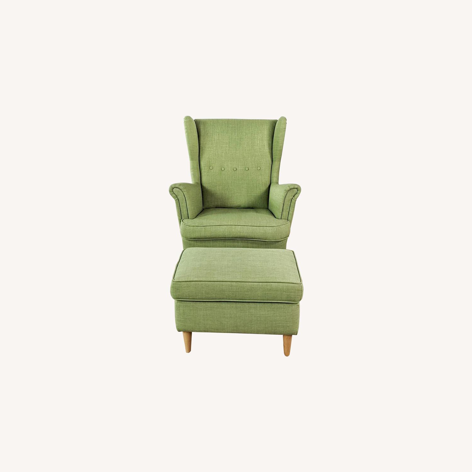 IKEA Green Upholstered Armchair and Ottoman