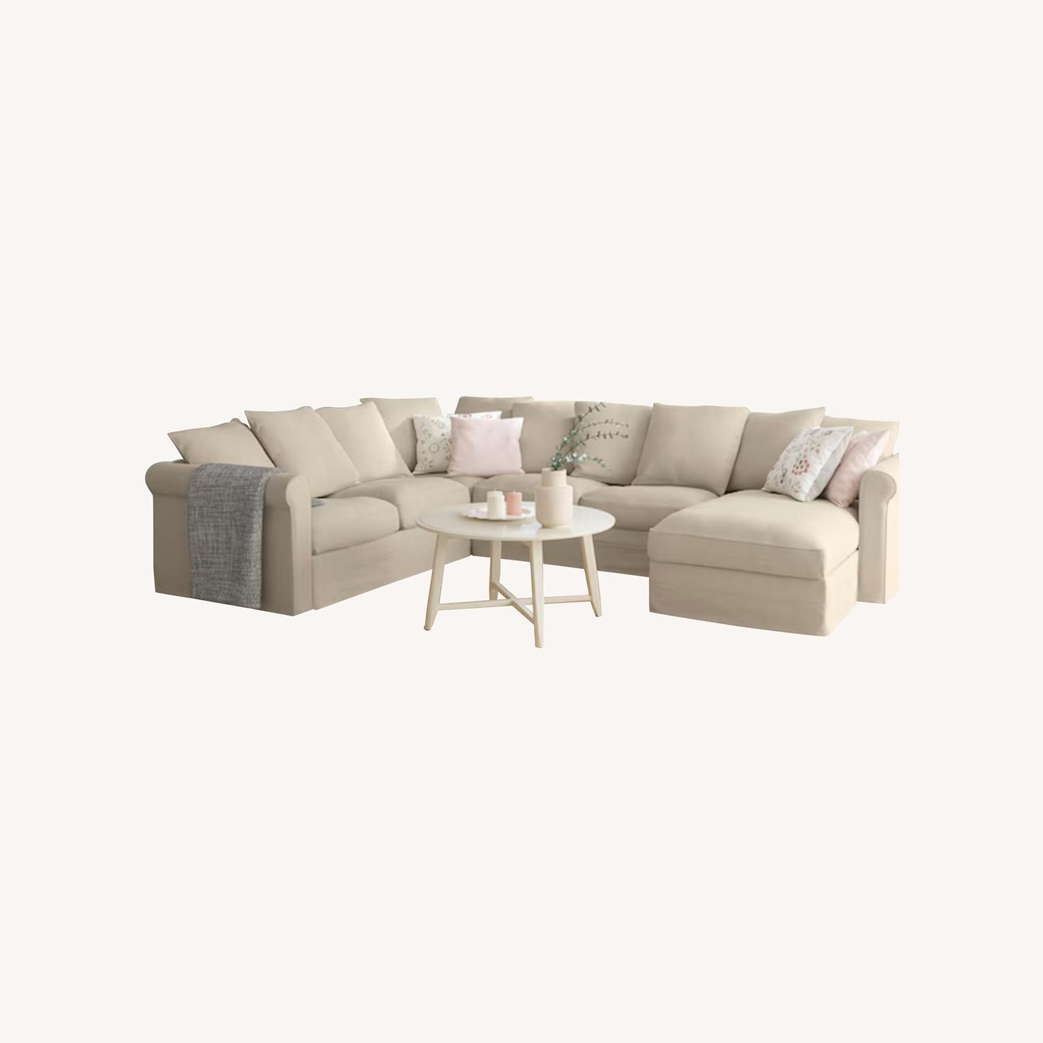 Seller's Notes:Ikea 5-seater couch with chaise on right side