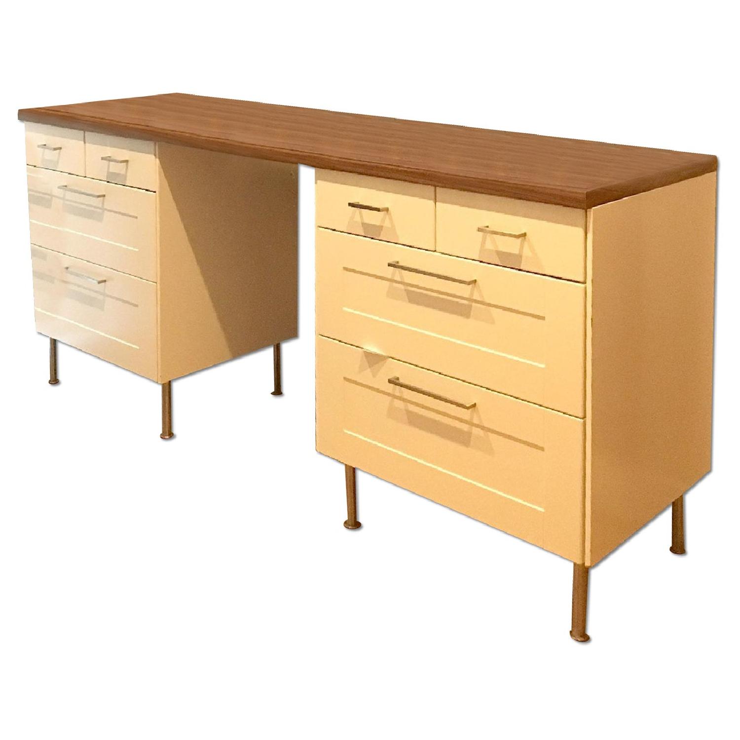 Seller's Notes:Two 30" wide kitchen base cabinets and an 88" laminate countertop. Cabinets have 4 soft close drawers, side trim panels, removable (replaceable) 8" legs. One cabinet has minor, hidden damage but functions perfectly. Color is soft white. Countertop is very good condition with some scuffing on far left edge.