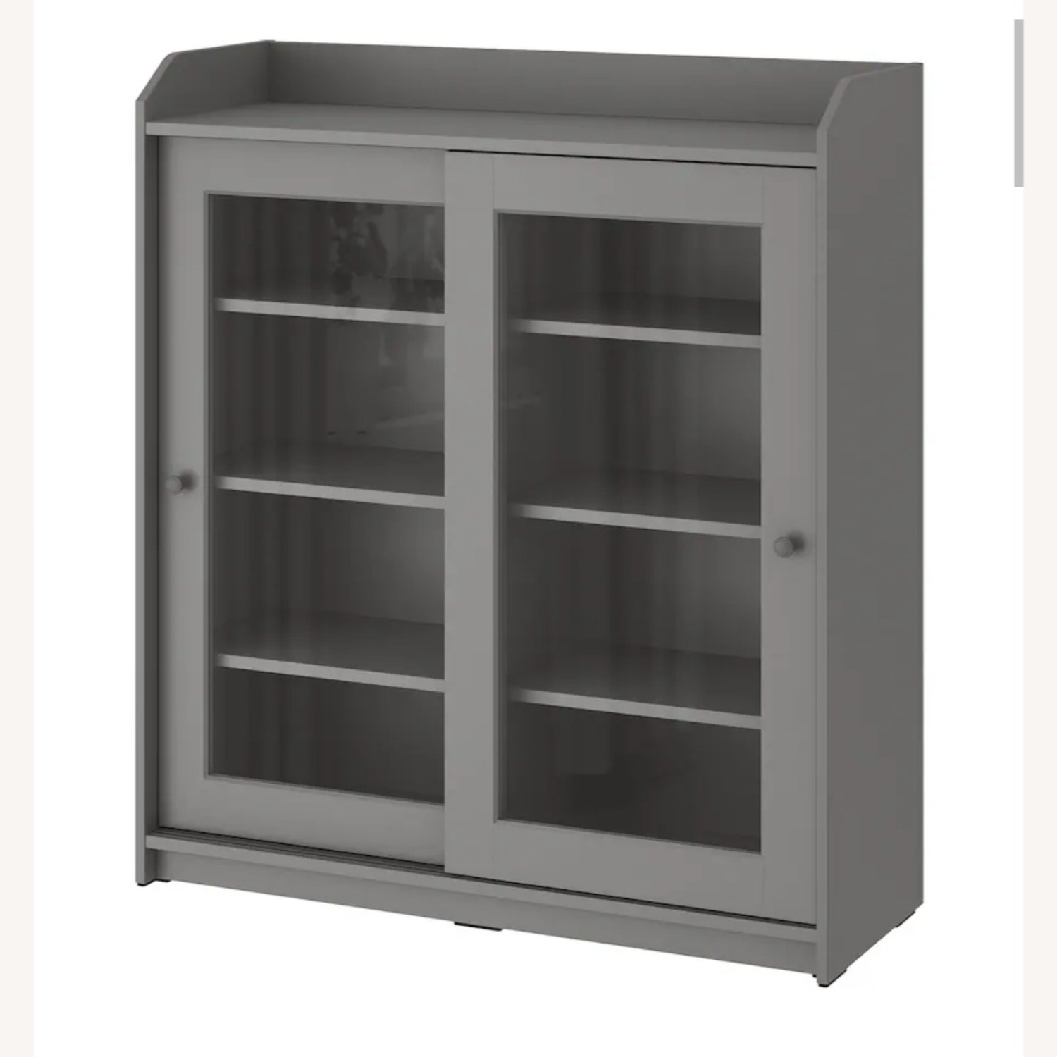 IKEA HAUGA Modern Gray Glass Door Cabinet