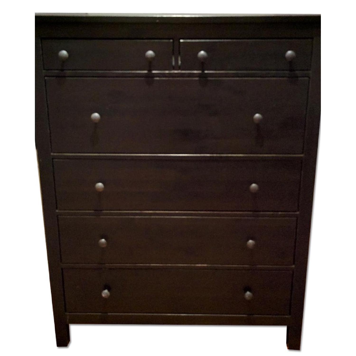 Seller's Notes:This is a large "Black-Brown" (very dark, nearly black), Ikea Hemnes dresser. I've had it for 3 years and it can hold quite a lot of clothing. Aside from minor wear, there is one faint scratch on the right side of the dresser.
