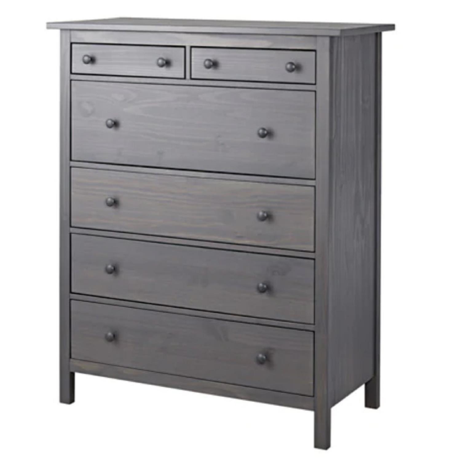 Seller's Notes:Ikea 6-drawer chest, dark gray gray stained Small scratch on right side but hardly noticeable I love this item but selling as it doesn't fit in my new place!