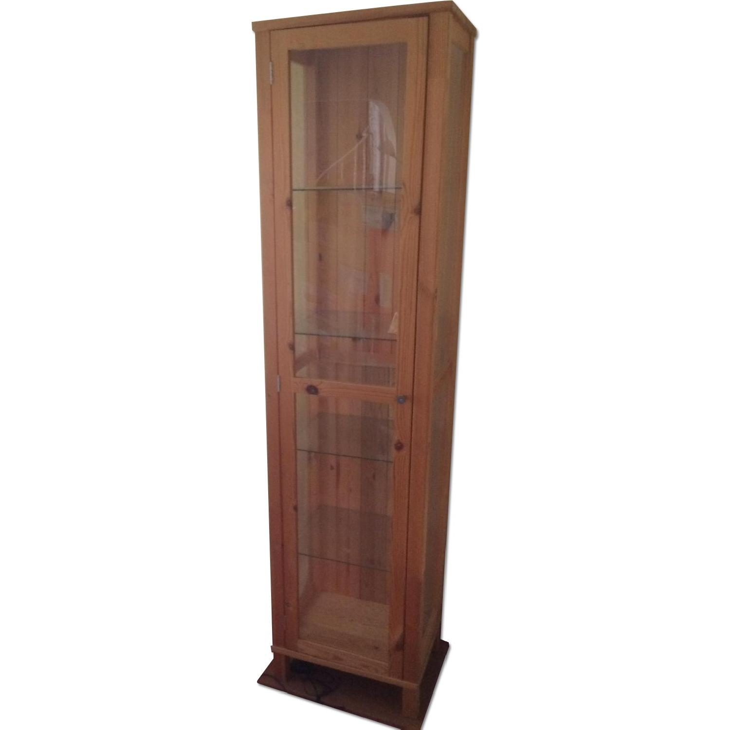 Seller's Notes:IKEA HEMNES glass door display cabinet Lightly used -- Stood in my living room but rarely opened Natural wood finish. Glass on door and two sides. Glass shelves This particular variant might have been discontinued...linking to current models for your reference http://www.ikea.com/us/en/catalog/products/50245665/#/50245665