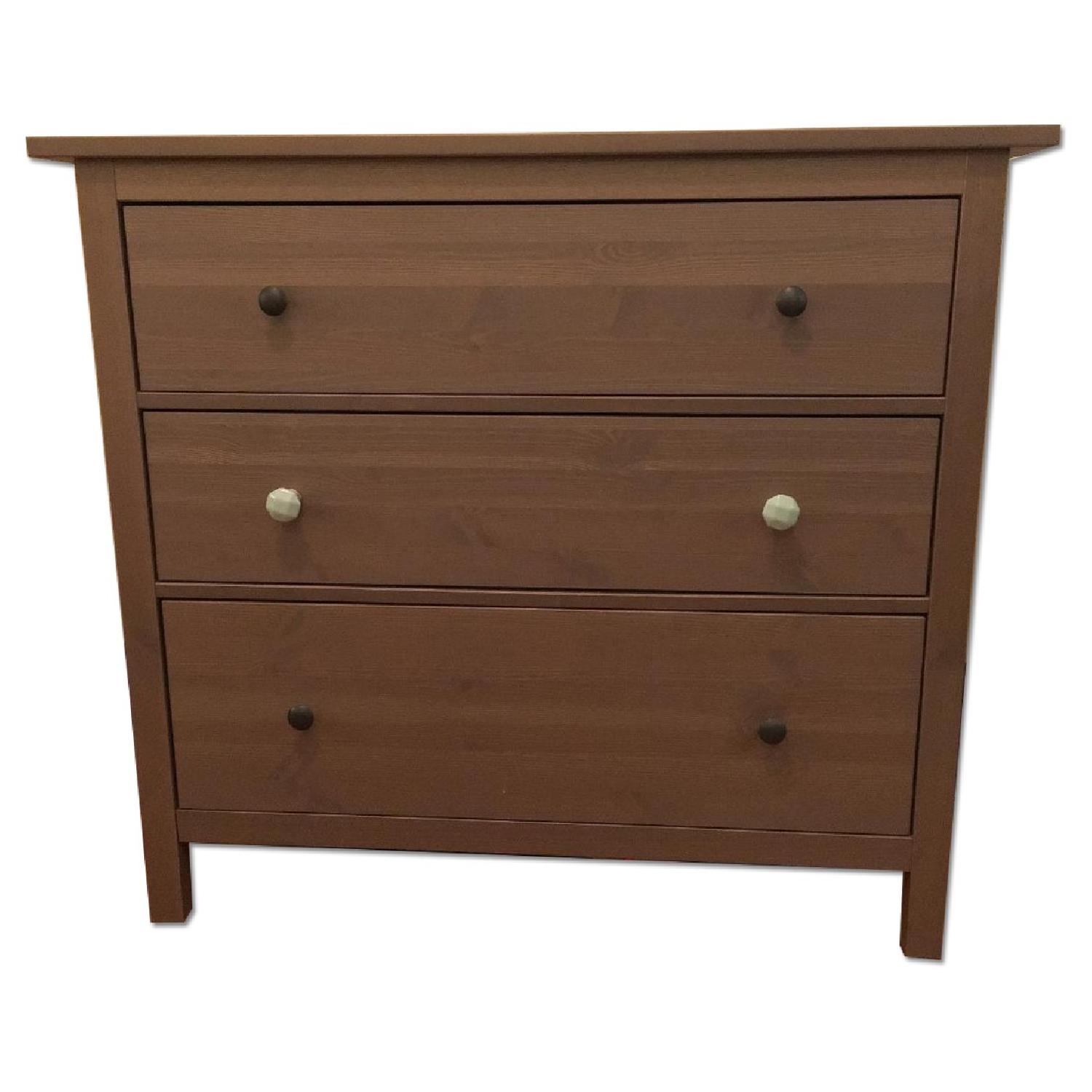 Seller's Notes:This IKEA Hemnes dresser is a little less than 2 years old. I bought it in LA, and it made the move to NY. It has a barely noticeable minor bump on the right hand side of the top. I'm only selling it because I'm unfortunately downsizing and need to find a smaller dresser. Otherwise I would be keeping it! It currently has two decorative knobs on the middle drawer, but I still have the original two and can switch them out.