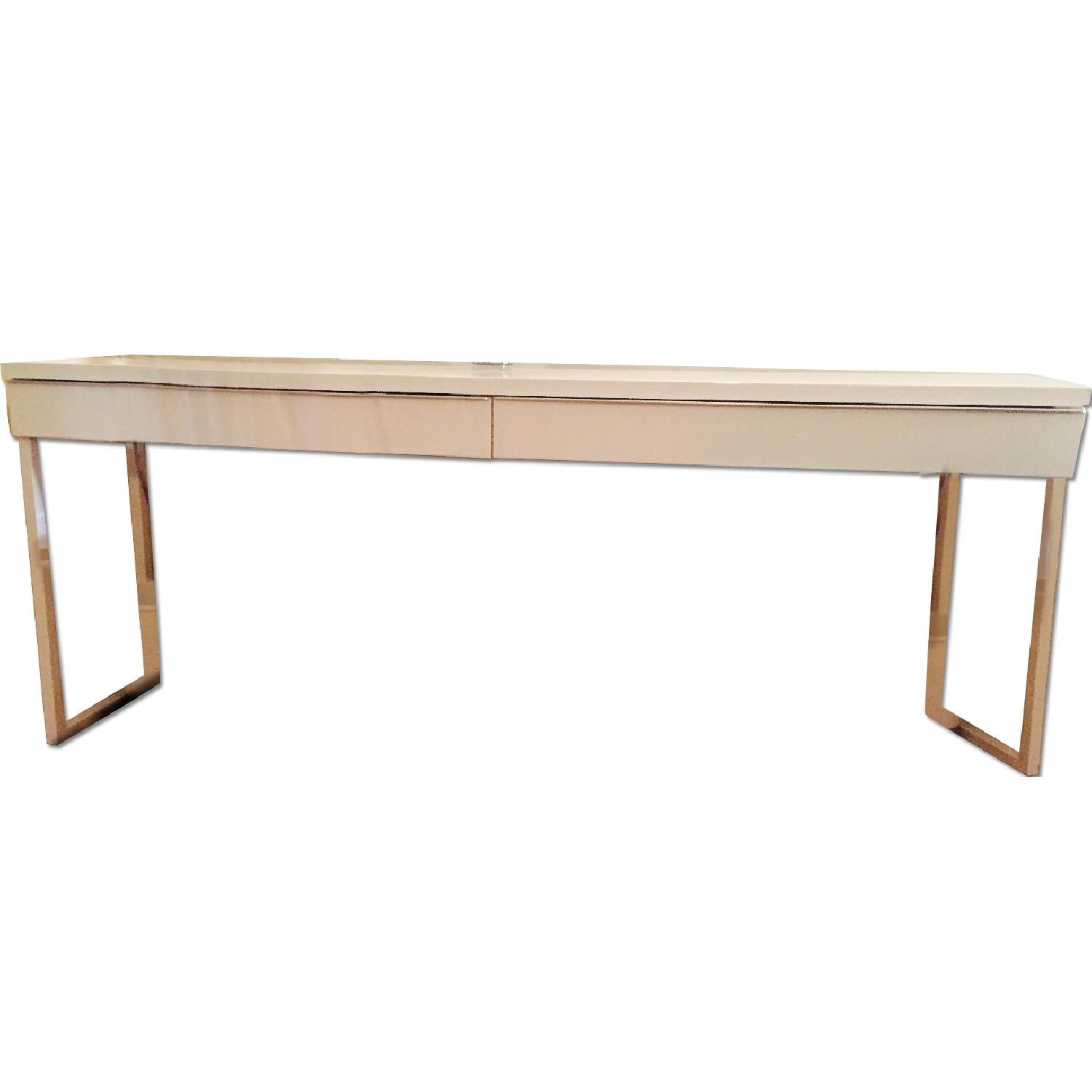 Seller's Notes:This is a one year old desk - its been very well taken care of and was in a non-smoking environment. It looks like new! Its made from a very solid lacquered high gloss white material. It looks great especially in the modern/contemporary flats but with its neutral color and minimalist shape, may look great almost anywhere! It may be used either as a desk or a console table. More Specific Product Dimensions: Width: 70 7/8 " Depth: 15 3/4 " Height: 29 1/8 "