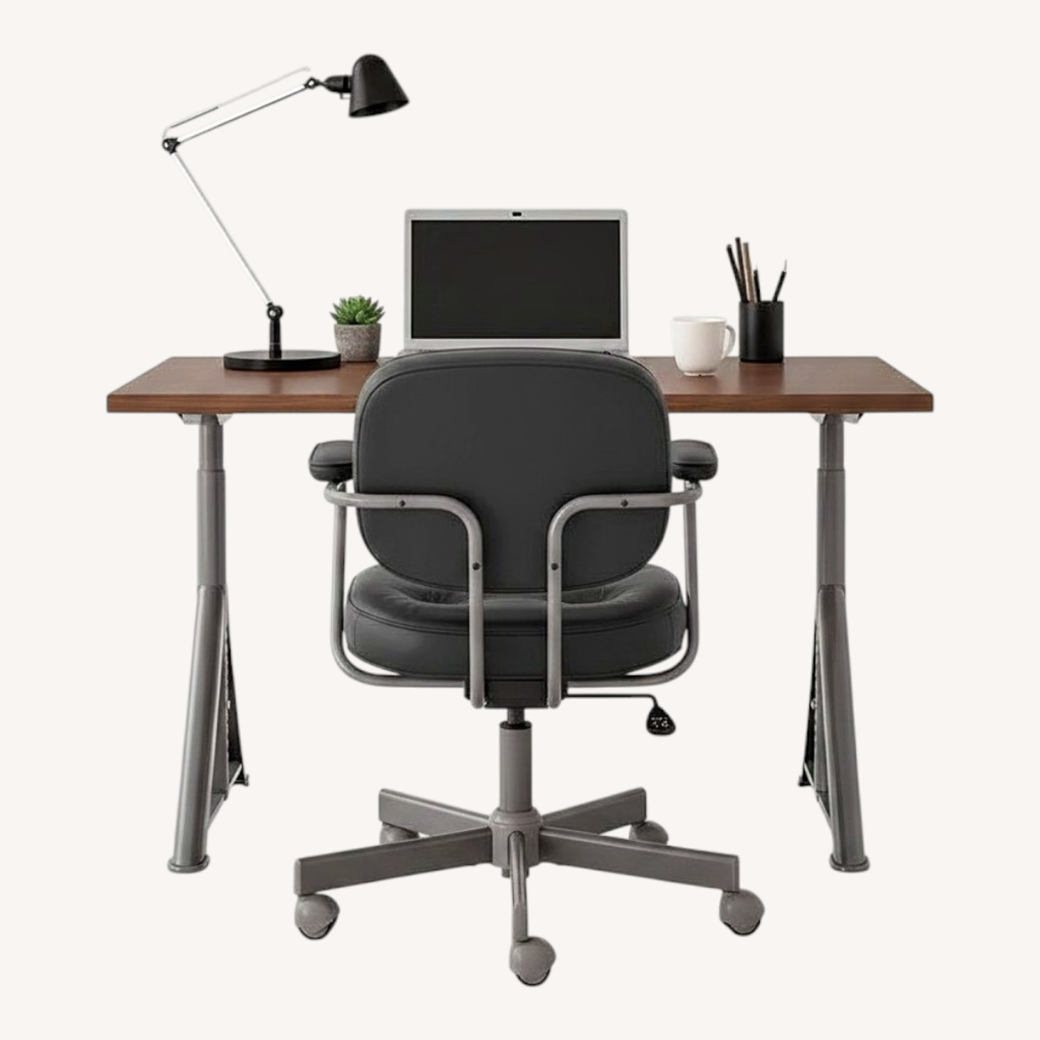 Seller's Notes:IKEA IDASEN Desk Sit/Stand with a comfortable computer chair.