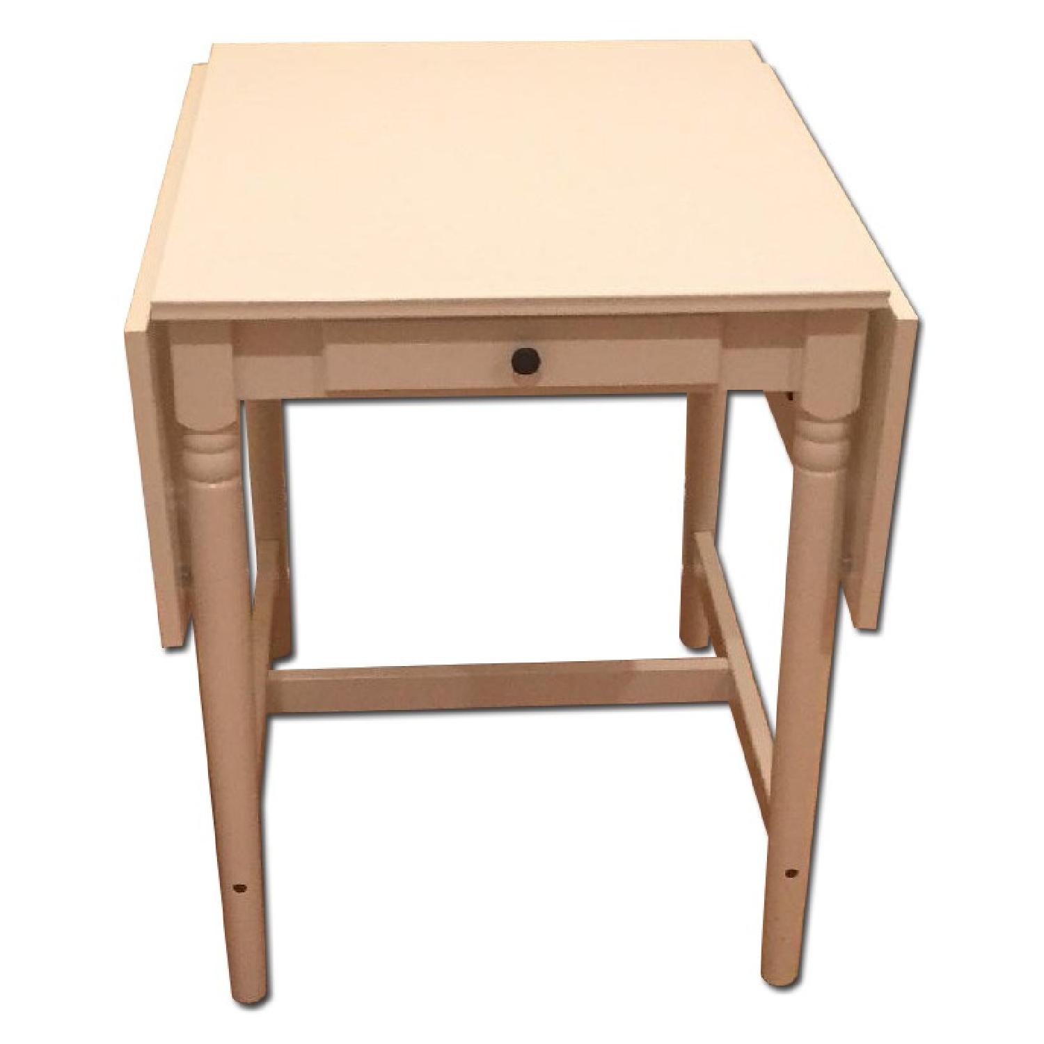 Seller's Notes:There are no scratches, stains, or discoloration that I am aware of. The table is in great condition an is not wobbly at all. The table has drop-leaves and seats 2-4, making it possible to adjust the table size according to need. There is a small drawer in the table, which i good for storage.