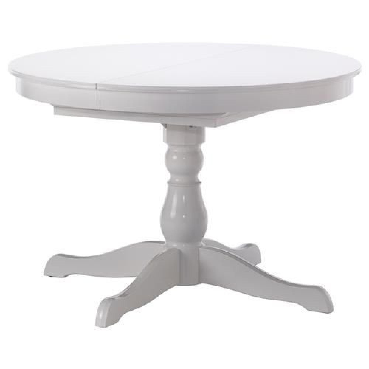 Seller's Notes:great white dining table from ikea. please note this table is the version that is NOT extendable, and therefore seats 4 total, not 6.