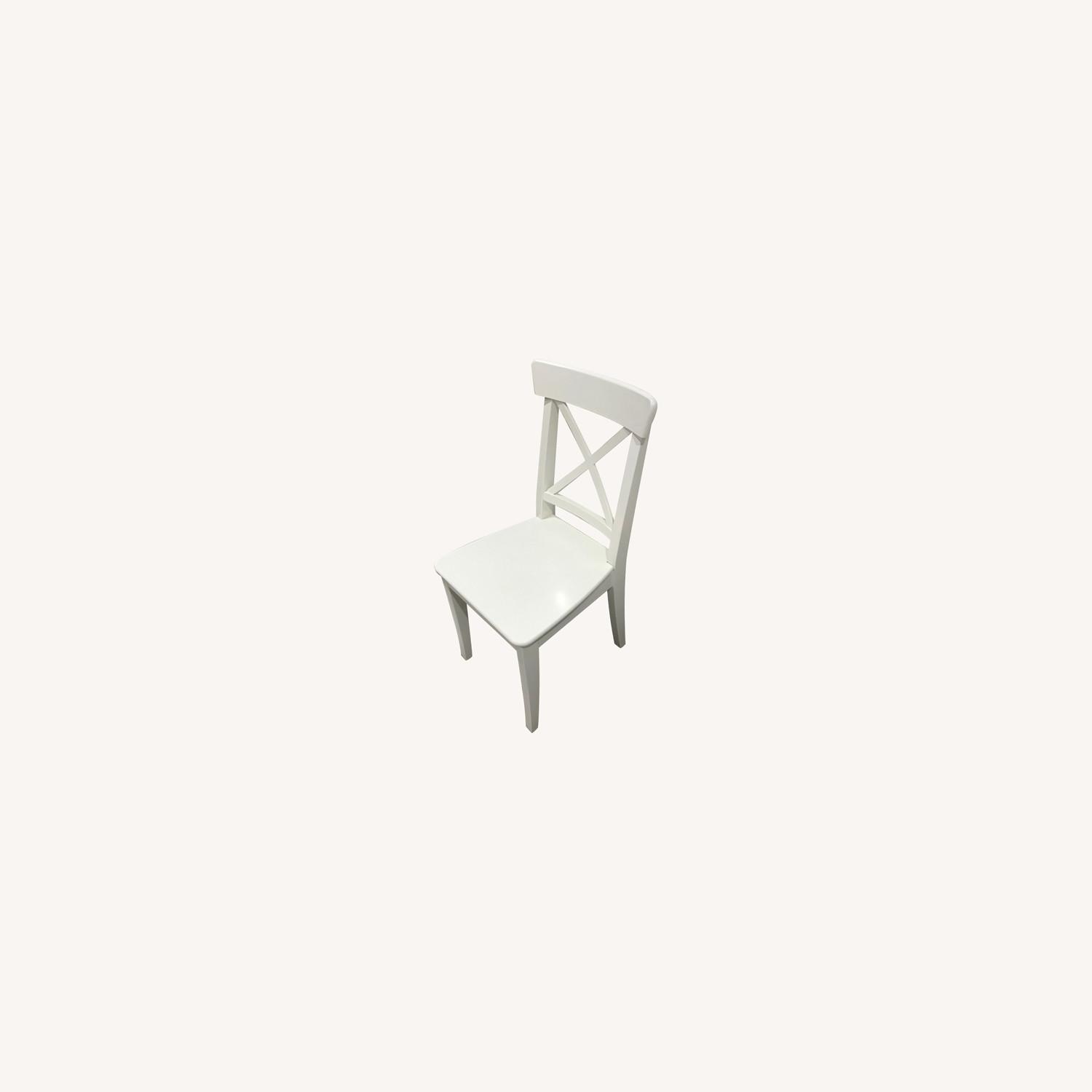 Seller's Notes:I bought these chairs a year ago when I moved into the city, am now moving back to London so looking to find them a new home. They are simple white kitchen chairs from IKEA: INGOLF Chair (x2) Colour: white Article Number: 701.032.50 They're sturdy and in good shape as have had reasonably light usage and I don't have children, pets or smoke. I'm moving on the 25th so just a note that collection would have to be by the 24th August at the latest.