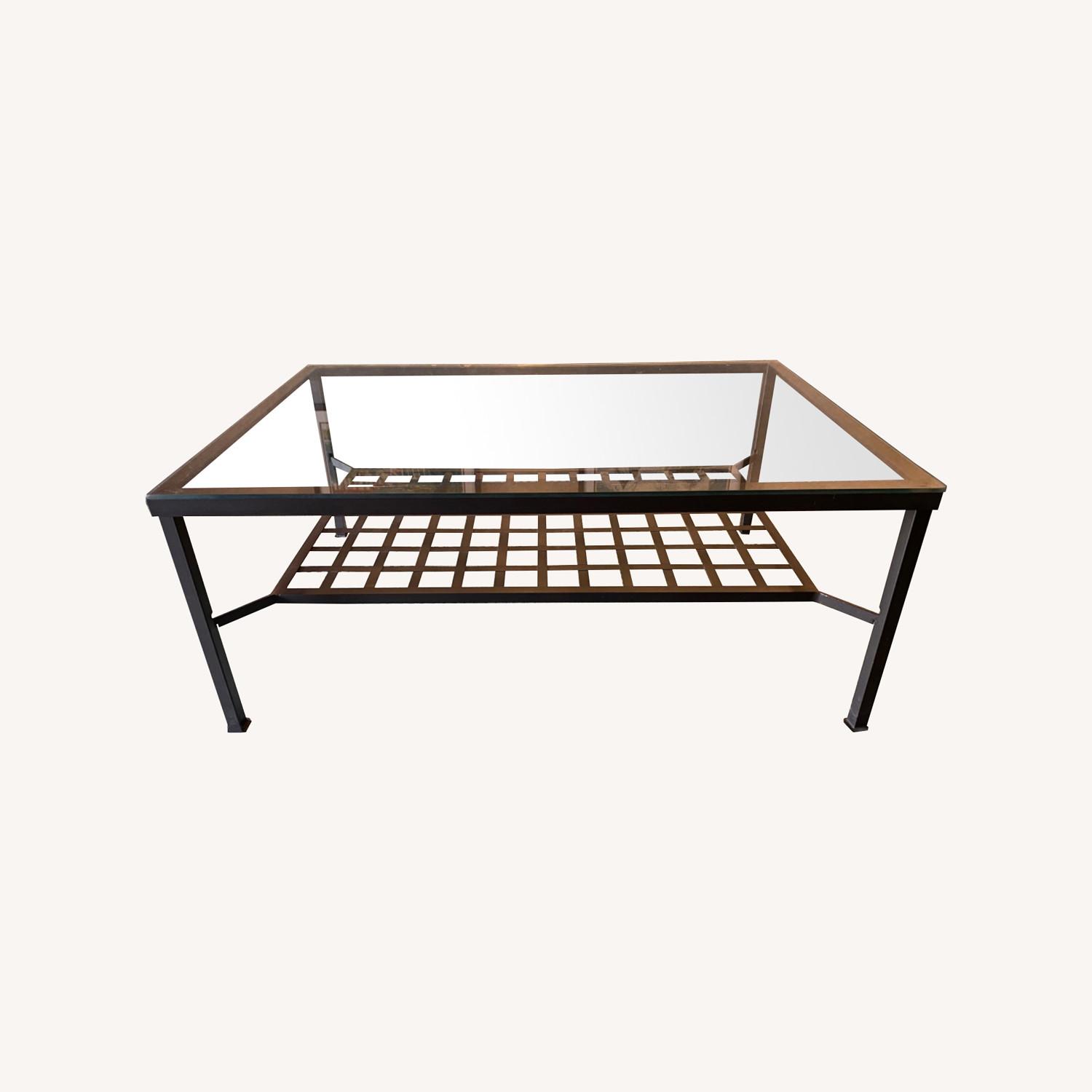 Seller's Notes:Very stylish mixed media bi-level coffee table. Perfect condition. Great addition to any decor. Dimension are approximate.