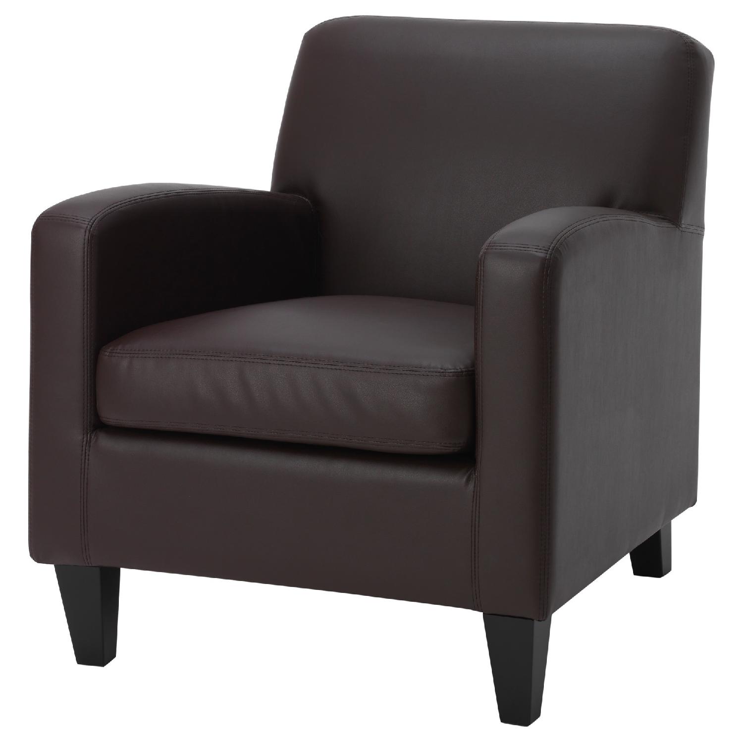 Ikea Jappling Brown Faux Leather Armchair & Ottoman