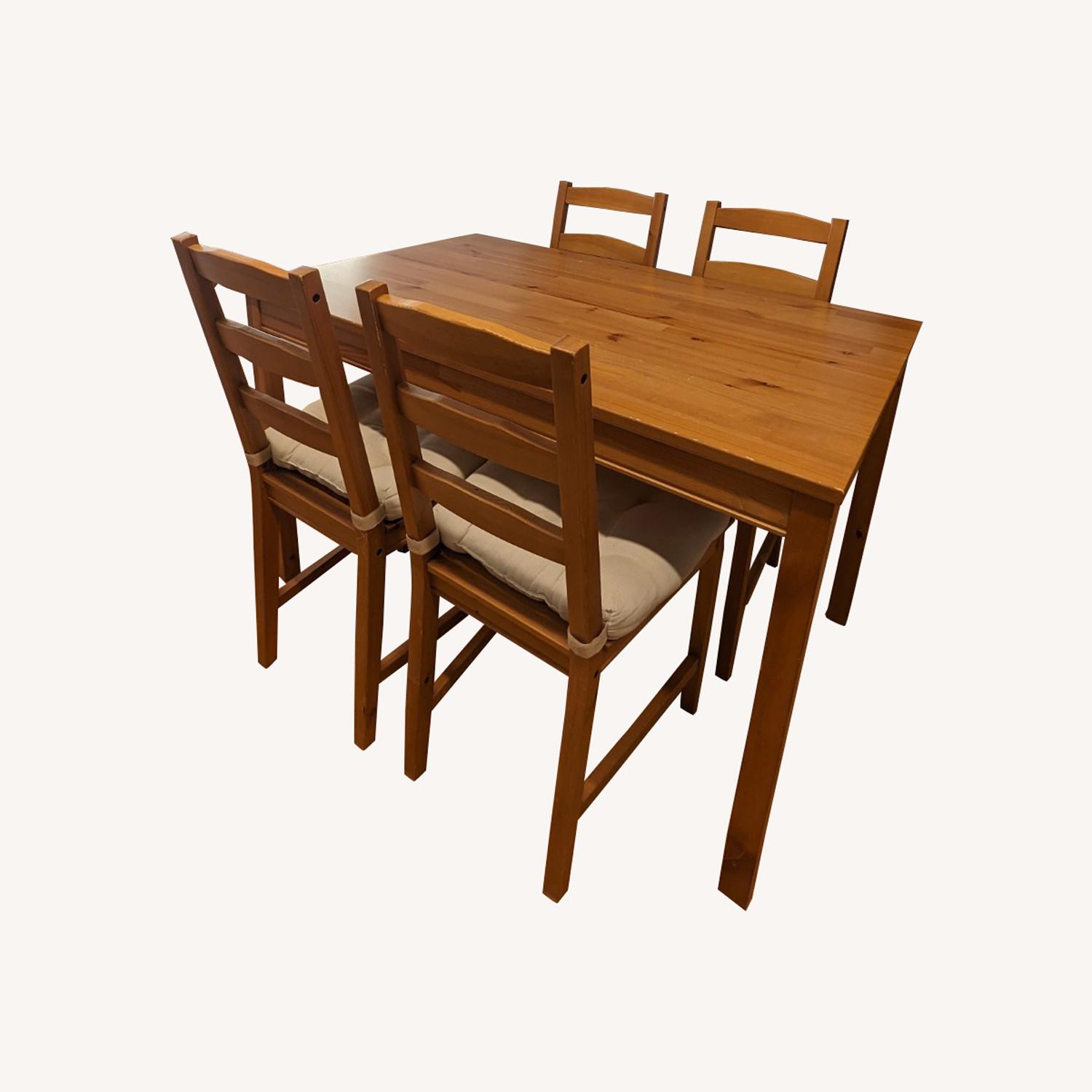 Seller's Notes:IKEA JOKKMOKK dining set. This is a used/pre-loved set. We are getting a new dining set and hoping for someone else to give this another life. Has significant scratches on top of table, but otherwise good condition:)