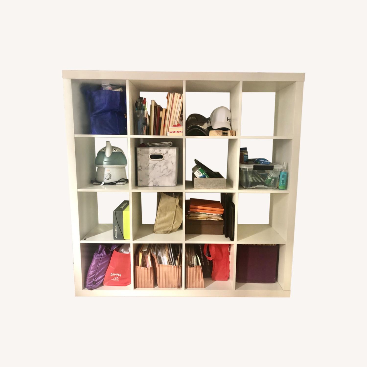 Seller's Notes:Very versatile 4x4 shelf unit that can serve as a bookcase, general organizer, or a room divider all at once. Sturdy and flexible for all types of room designs. Easy to clean and easy on the eyes.
