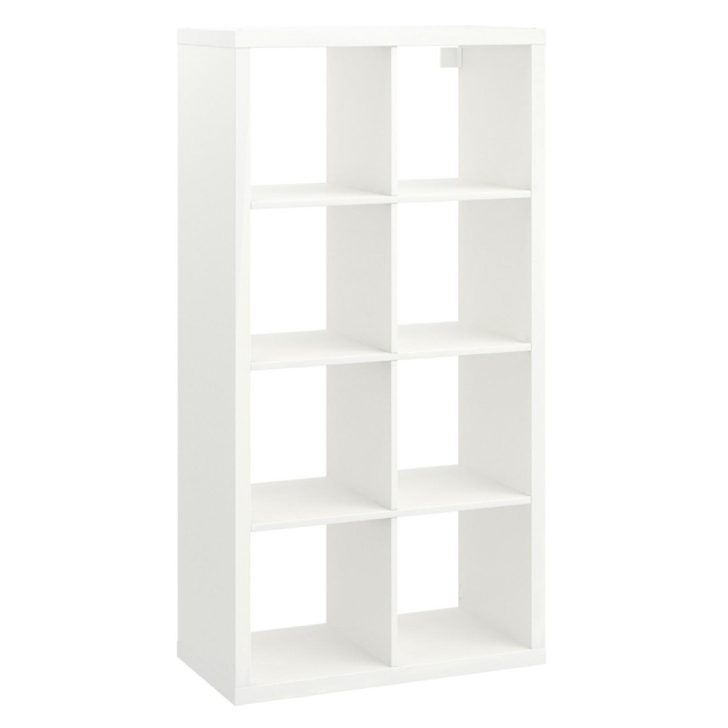 Seller's Notes:This is the previous version of the standard IKEA Kallax shelf unit. The modular openings are the same and will work will standard storage, but the edge wood is thicker and makes the shelf a bit sturdier (hence the slight dimension difference). It's very easy to clean and easy to move. 4 year use and has a few scratches (see detail images) but is very useful.