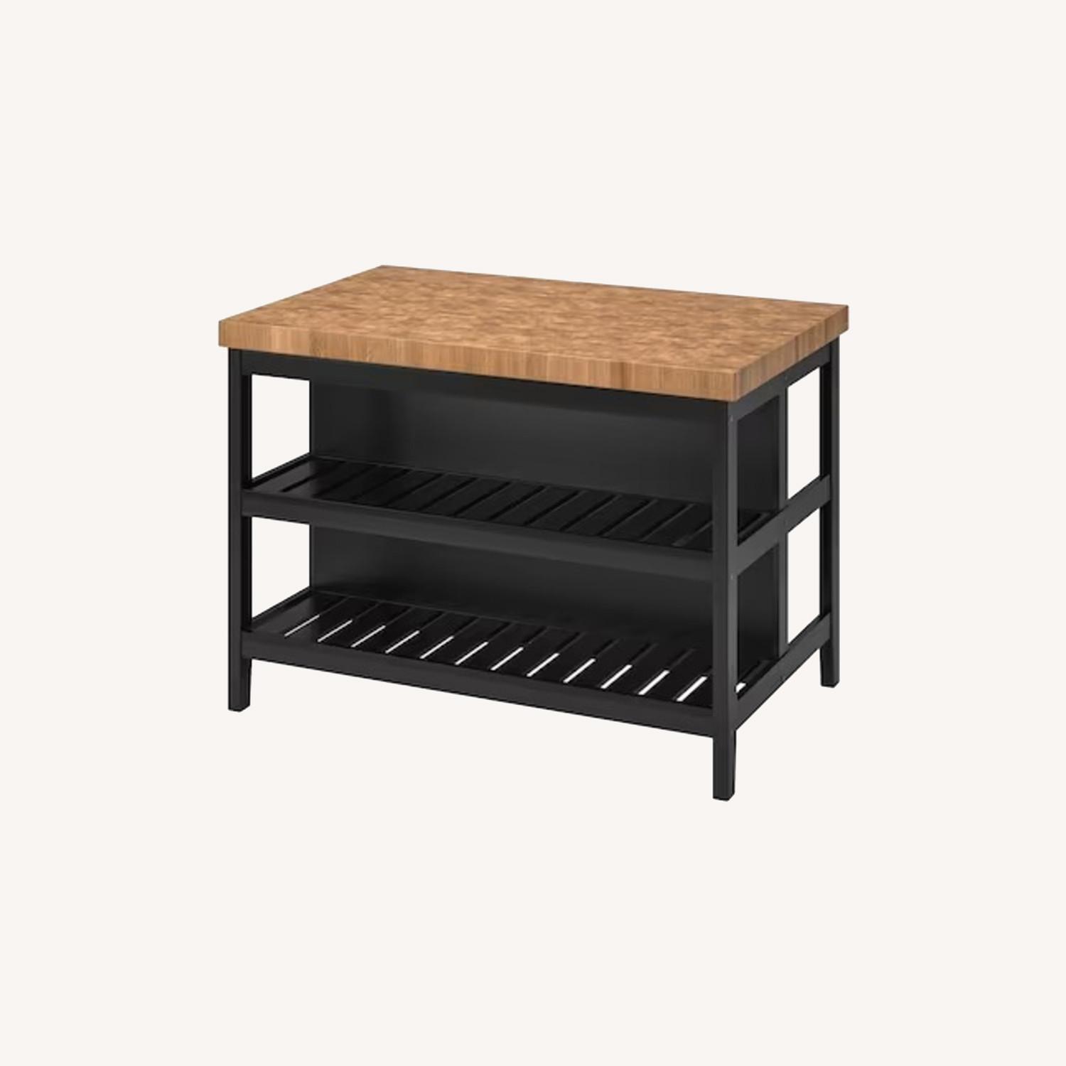 Seller's Notes:Ikea's VADHOLMA kitchen island (retailing at $530) . Minimal wear, excellent condition. Here's a link: https://www.ikea.com/us/en/p/vadholma-kitchen-island-black-oak-20359154/ Comes with 2 Franklin bar stools, included (retailing at $40 each).