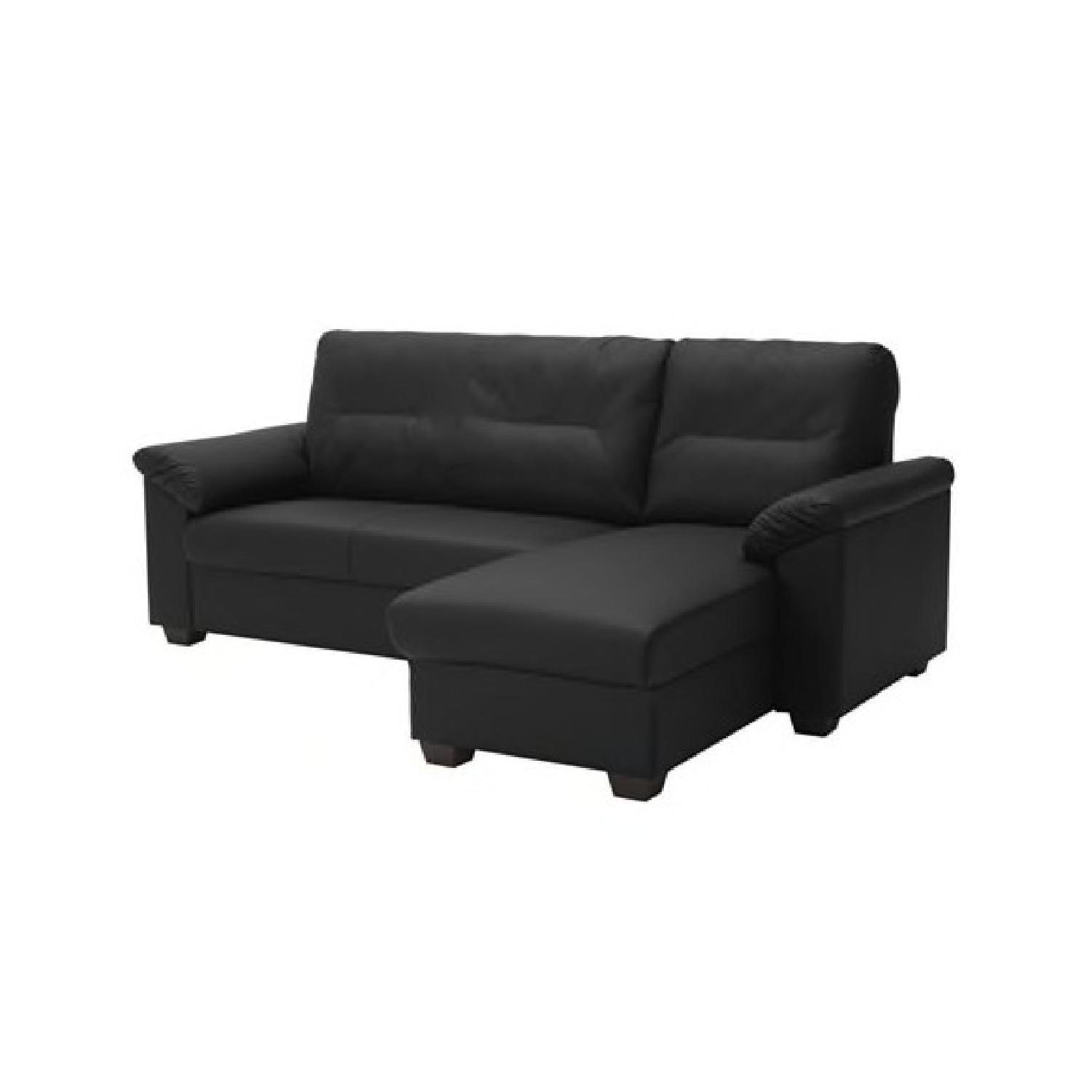 Seller's Notes:Black, leather Ikea L-shaped couch in fantastic condition (no rips or significant wear and tear). Sectional depth is 60", non-sectional part is 34".