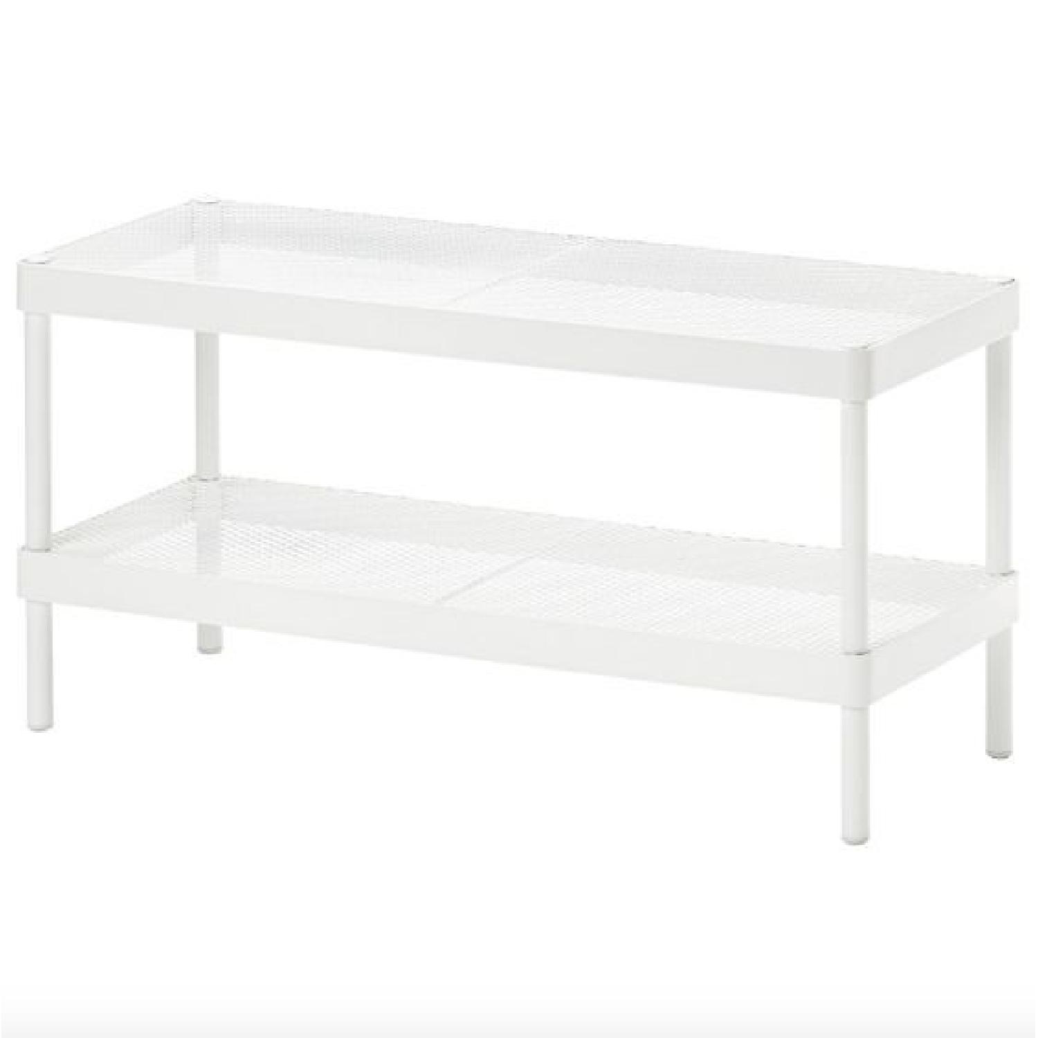 Seller's Notes:Good condition, minor rusting on underside of shelf pictured. Stackable if you purchase additional racks. Also selling matching coat rack in another listing. White, metal, great for organizing shoes