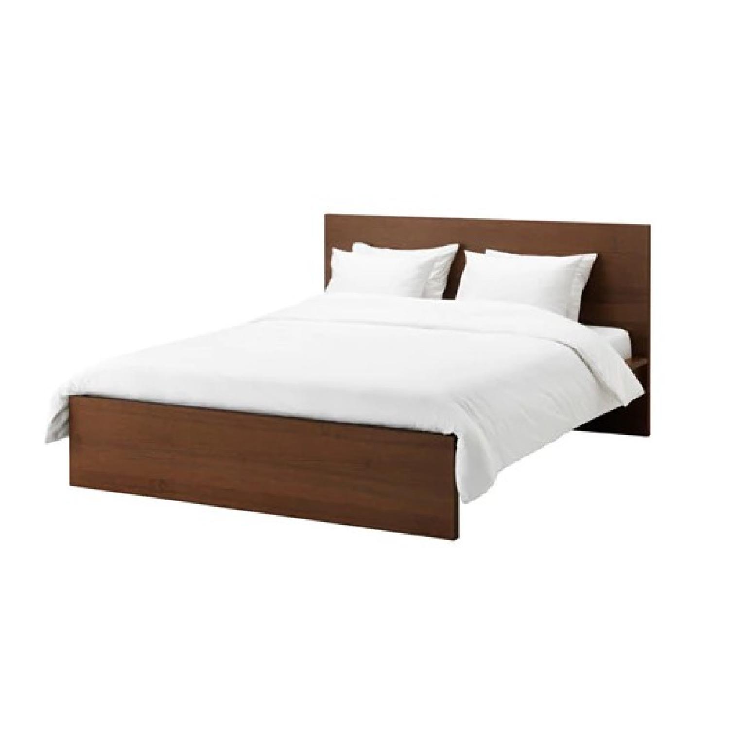 Seller's Notes:Full/Double Bed frame, great condition. Comes in black, but the color is no longer available online at IKEA so example images are shown with brown finish. Small nick on the headboard on lower left but is completely hidden with pillows on the bed. Otherwise perfect condition