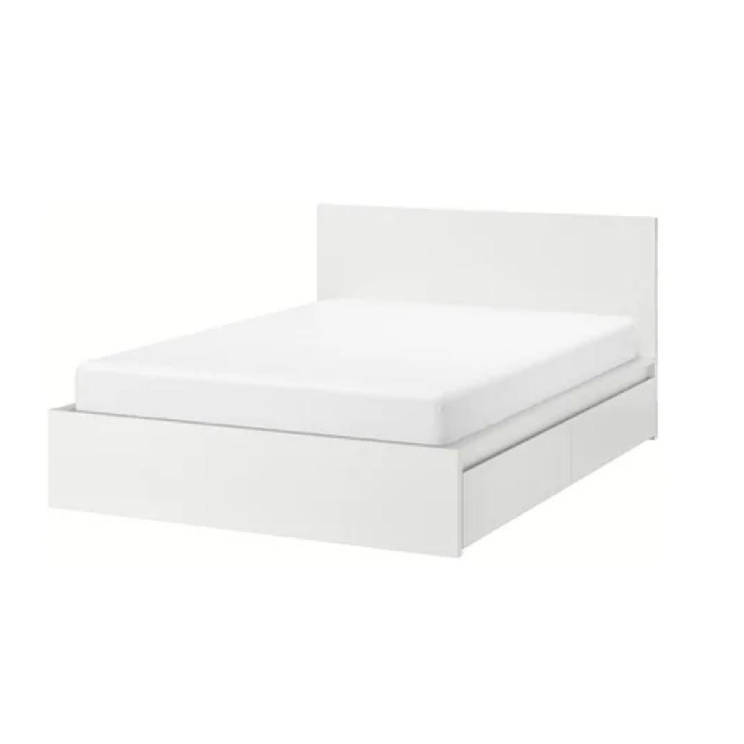 Ikea Malm White Queen Size Bed w/ 2 Storage Boxes