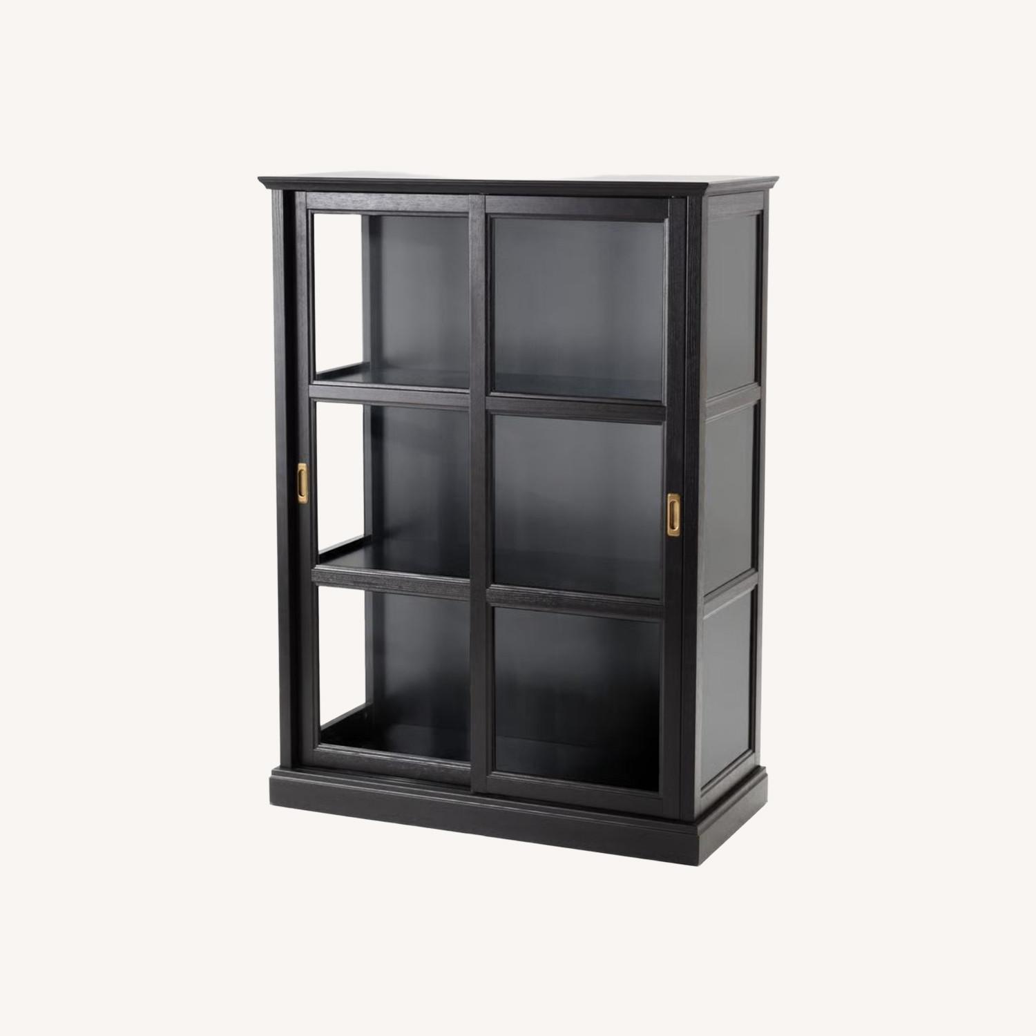 Seller's Notes:Set of 2 glass-door cabinets with glass on the sides and sliding doors.