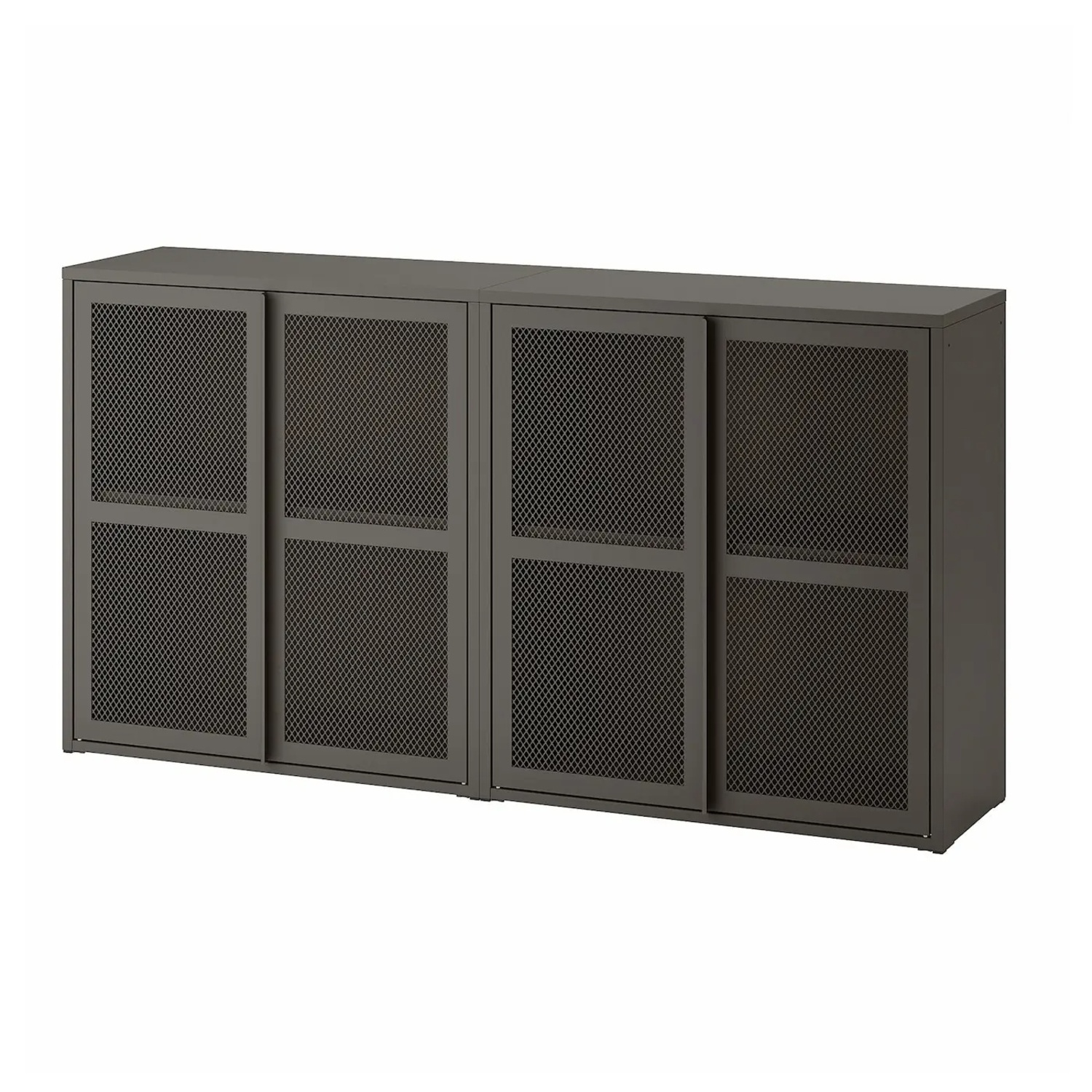 These spacious metal cabinets with mesh doors can be hung on a wall, placed on the floor or built into IVAR storage system. Fits just as well in the living room as in the kitchen or hallway.