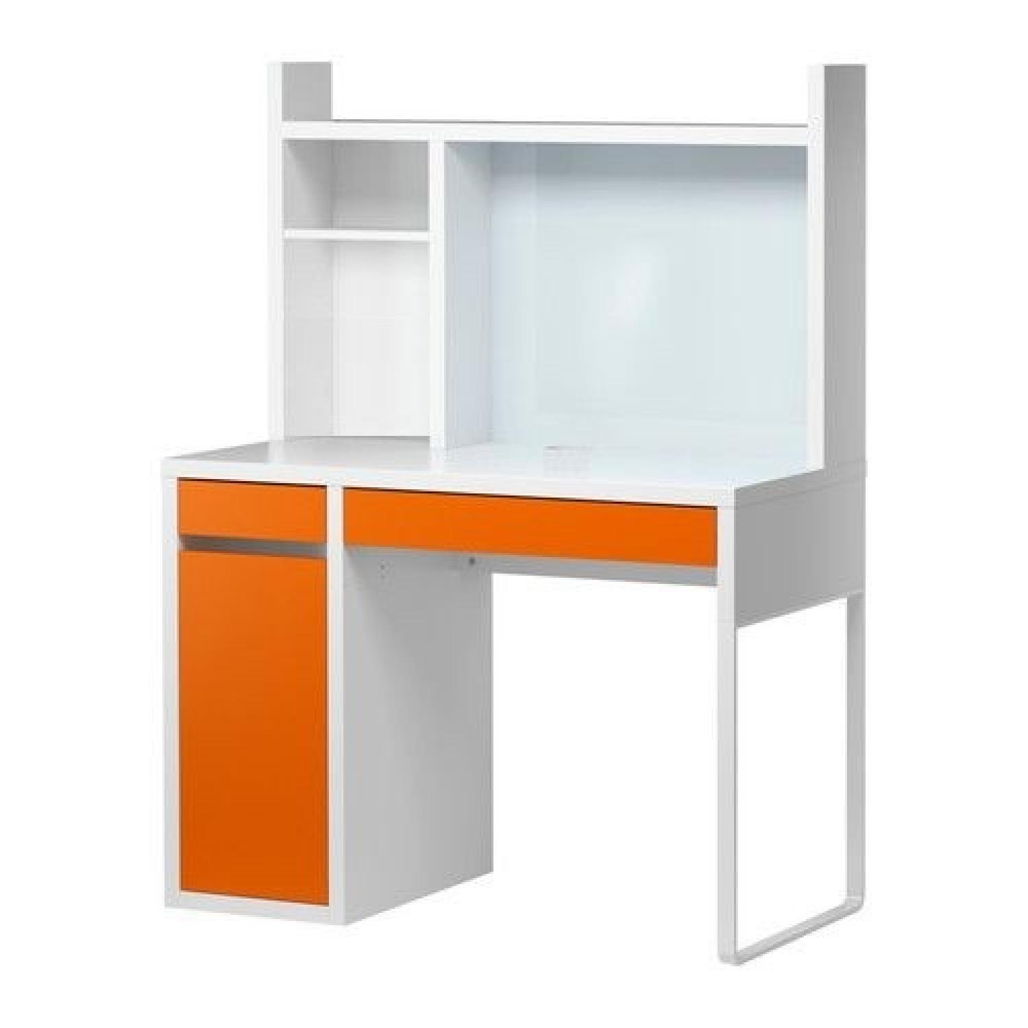 Ikea Micke White/Orange Desk w/ White Add On Unit