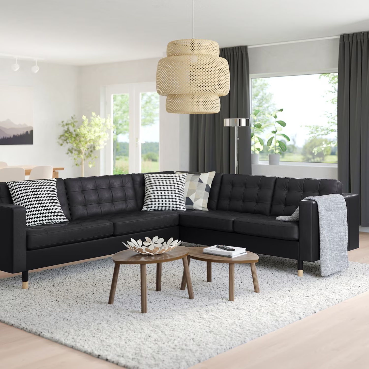 IKEA Morabo Black Leather Sectional Sofa