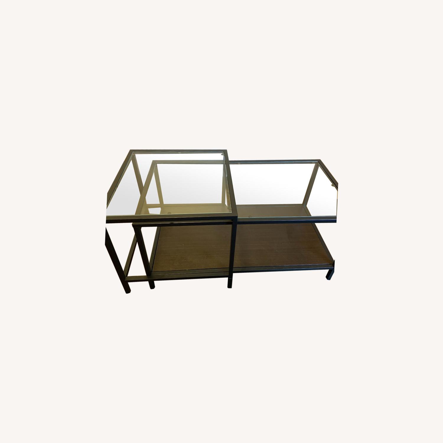 Seller's Notes:The table tops in tempered glass are stain resistant and easy to clean. You can select the expression you like best, since the shelf is black on one side and black-brown on the other. Stands evenly on uneven floors with the adjustable feet. Can be pushed together to save space.