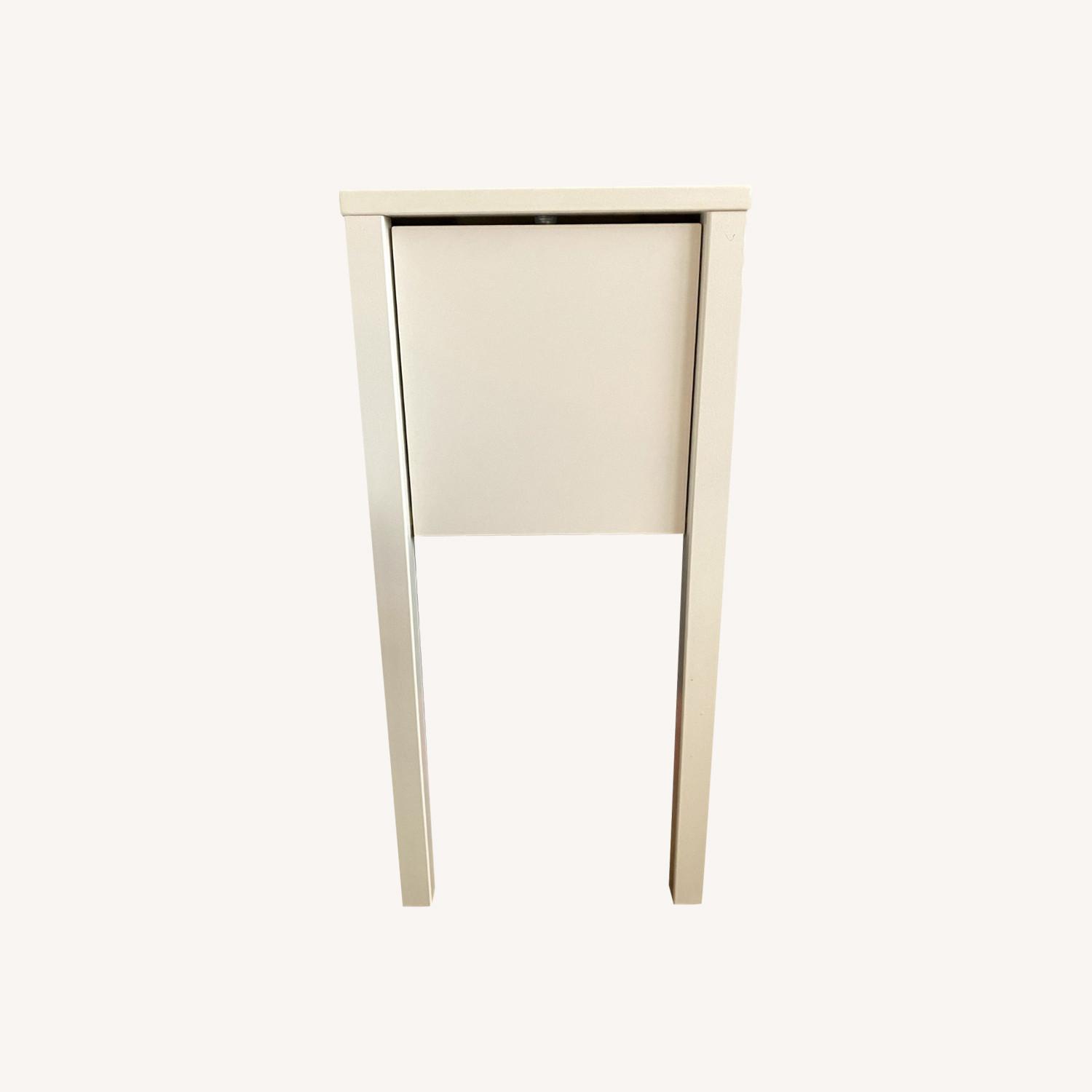Seller's Notes:Ultra slim bedside table with drawer. Drawer opens up to a cubby that reaches to the back of the table, helping with cord management. In near perfect condition. Light and easy to transport. Dimensions: Width: 11 3/4" Depth: 19 5/8" Height: 26 3/8"