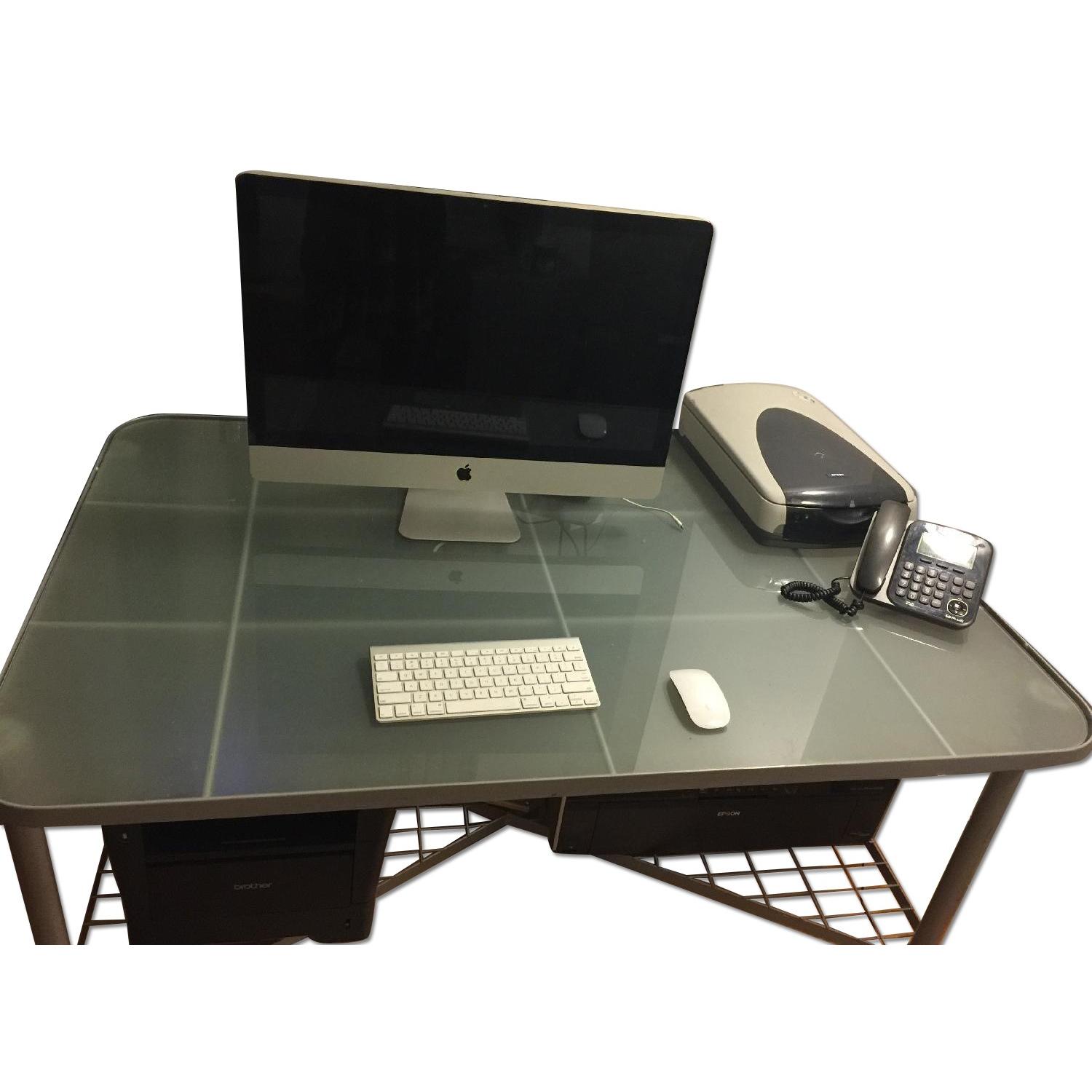 Ikea Office Desk w/ Glass Top & Chair